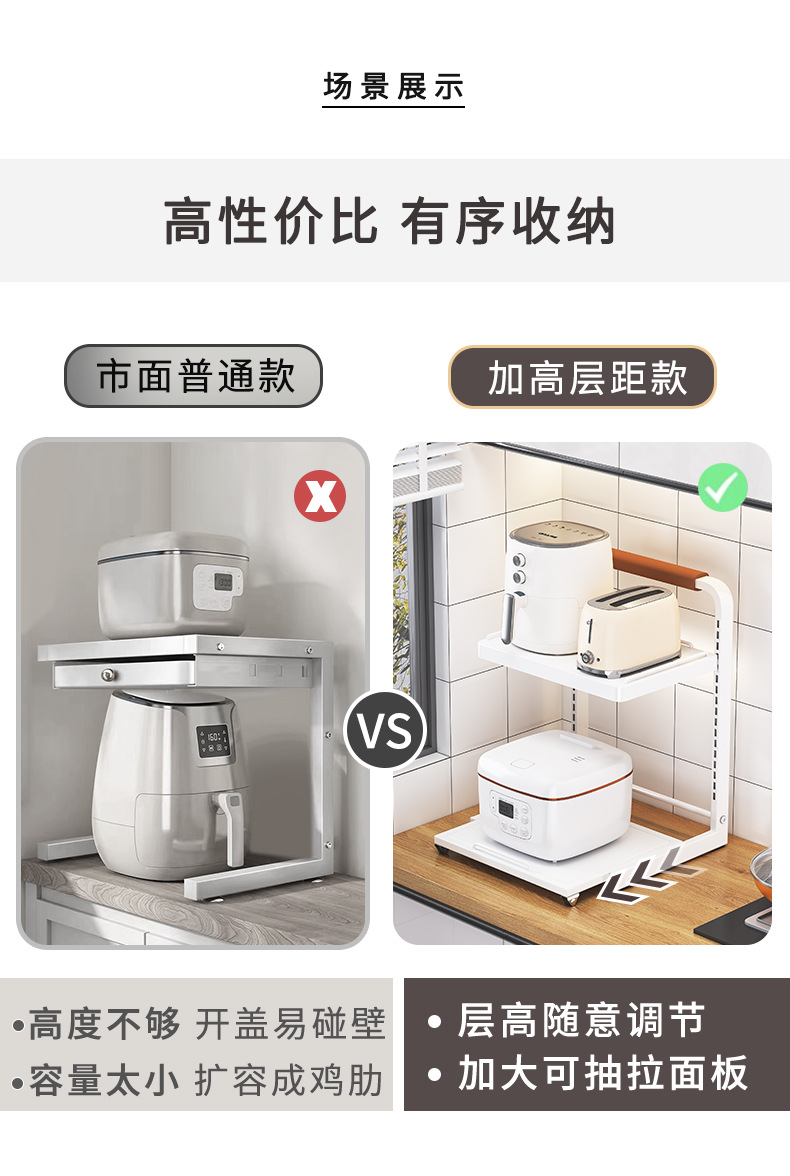 도매 밥솥 랙 개폐식 가전 제품 랙 조정 가능한 에어 프라이어 층 보관스토어 가기