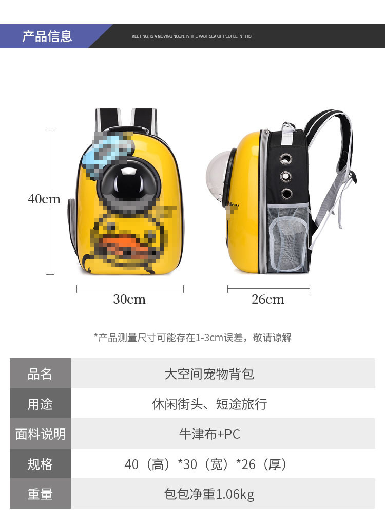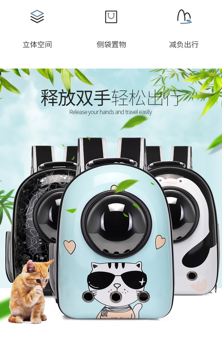 휴대용 애완 동물 가방 통기성 고양이 개 여행 배낭 투명 만화 대용량 편안한 방수 에어 케이스
