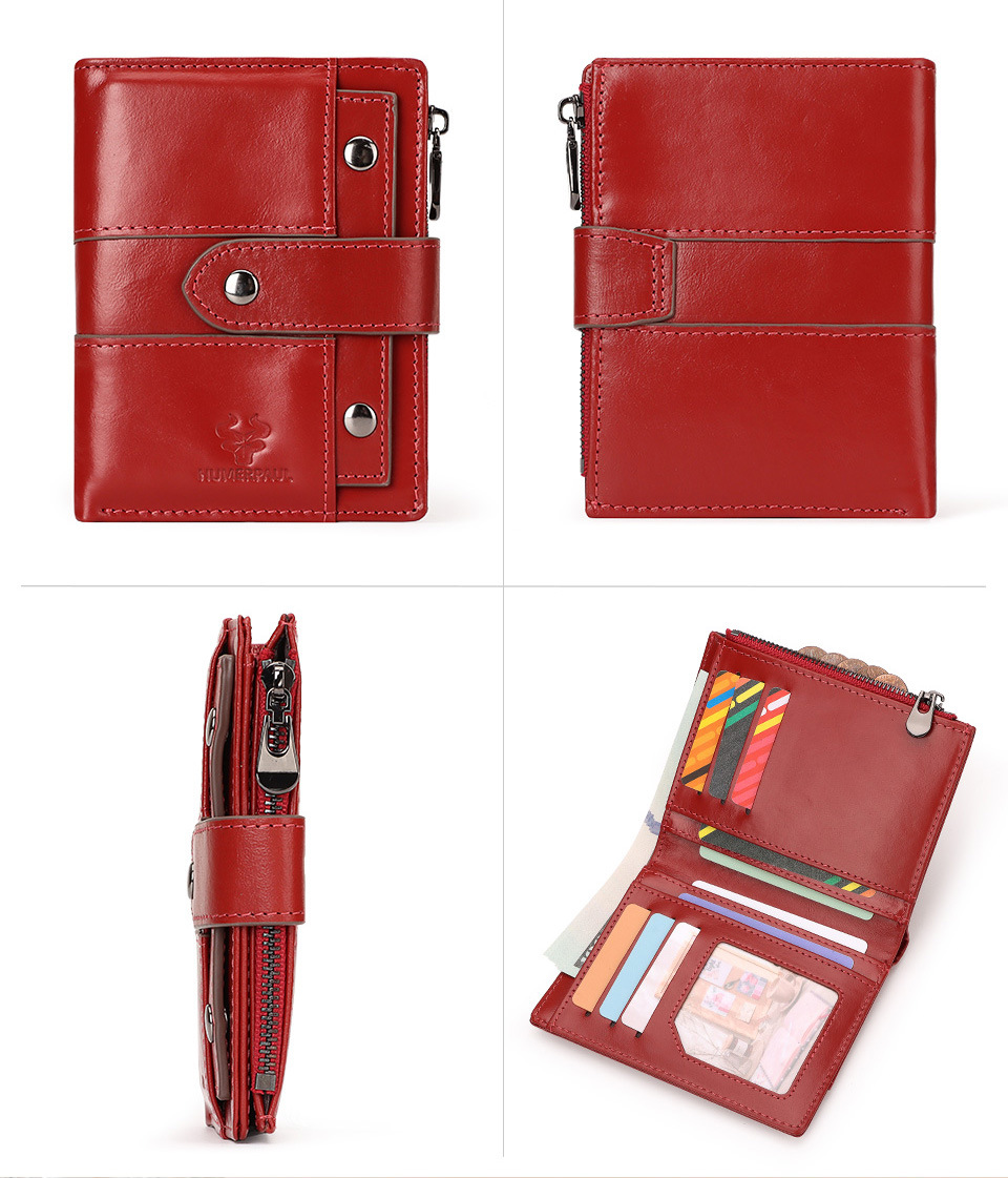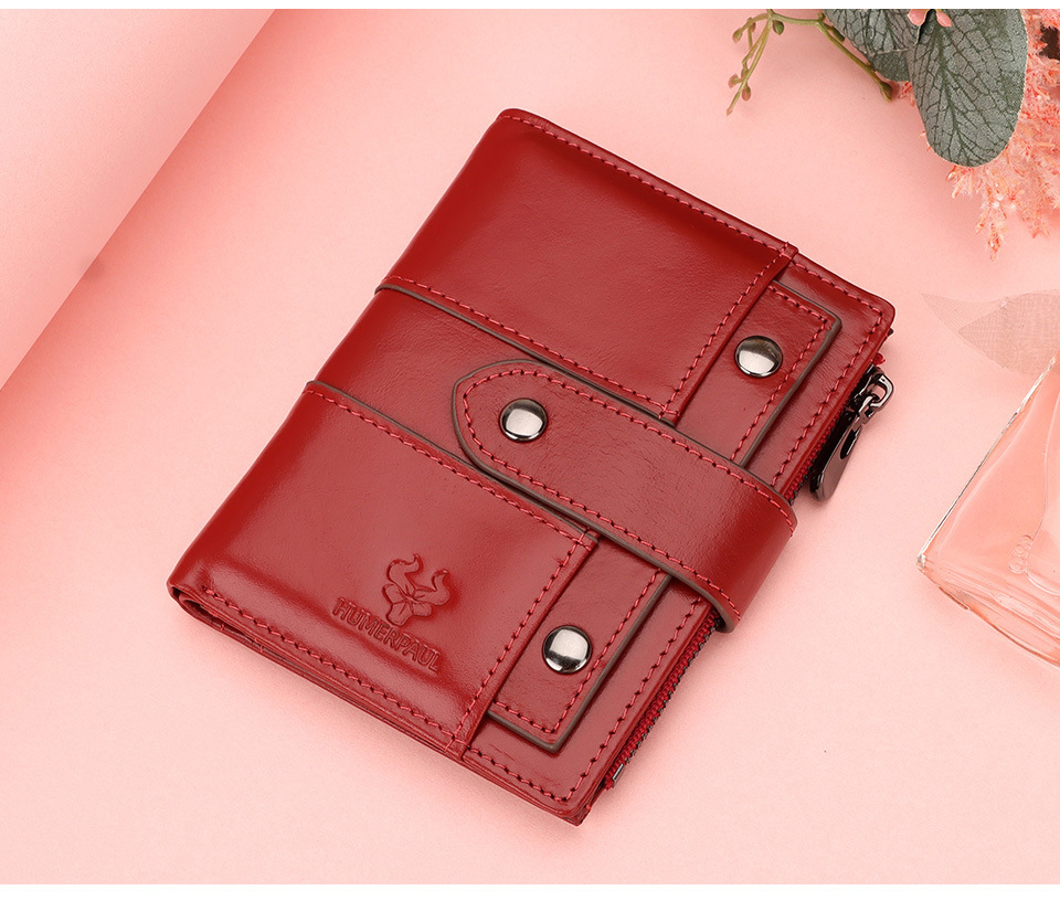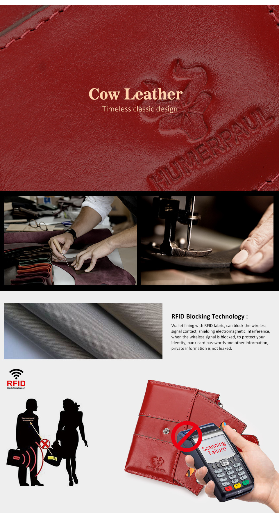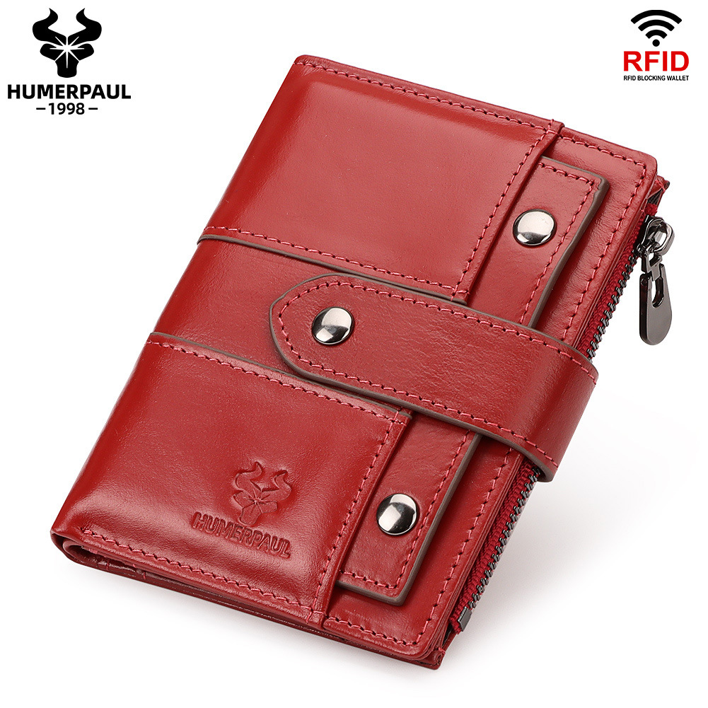 허머 폴 빈티지 숙녀 2 중 가죽 지갑 RFID 윌로우 네일 버클 헤드 레이어 소가죽 변경 카드 가방 도매스토어 가기