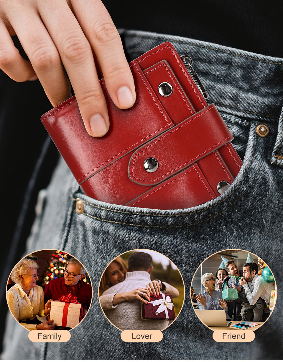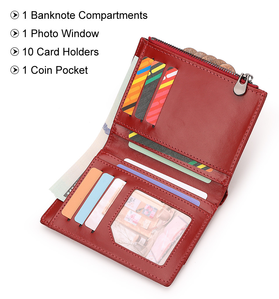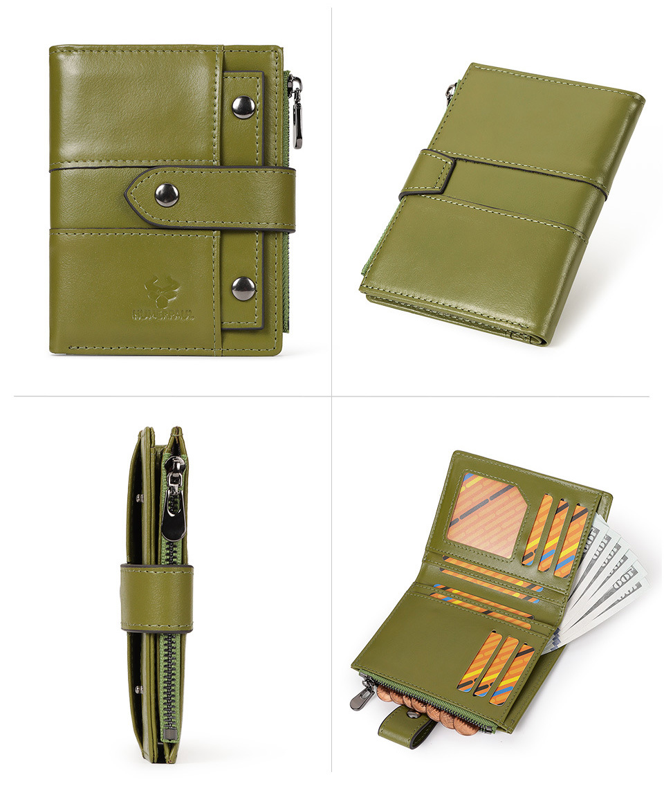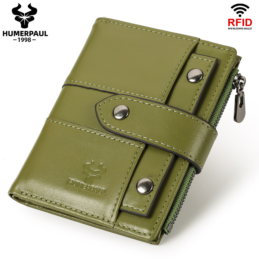 허머 폴 빈티지 숙녀 2 중 가죽 지갑 RFID 윌로우 네일 버클 헤드 레이어 소가죽 변경 카드 가방 도매스토어 가기