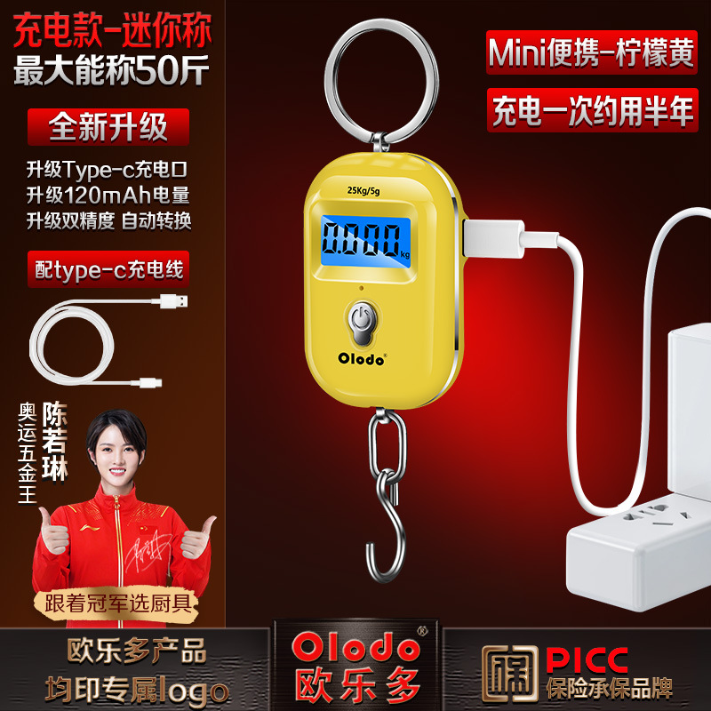 • 충전식 모델 [레몬옐로우] 미니 휴대용 저울 25kg