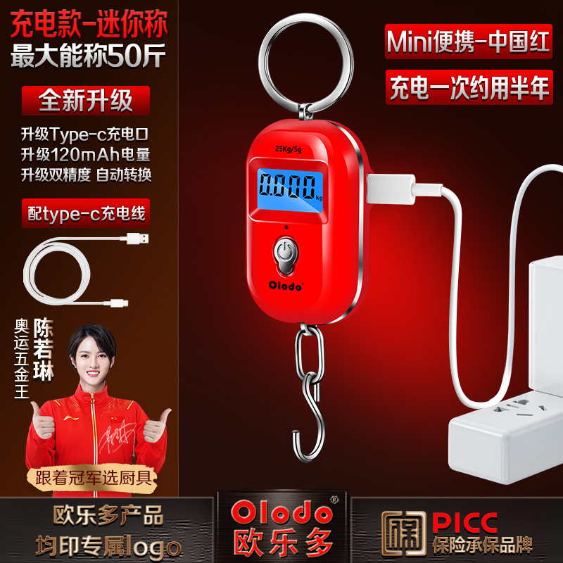 • 충전식 모델 [차이나 레드] 미니 휴대용 저울 25kg