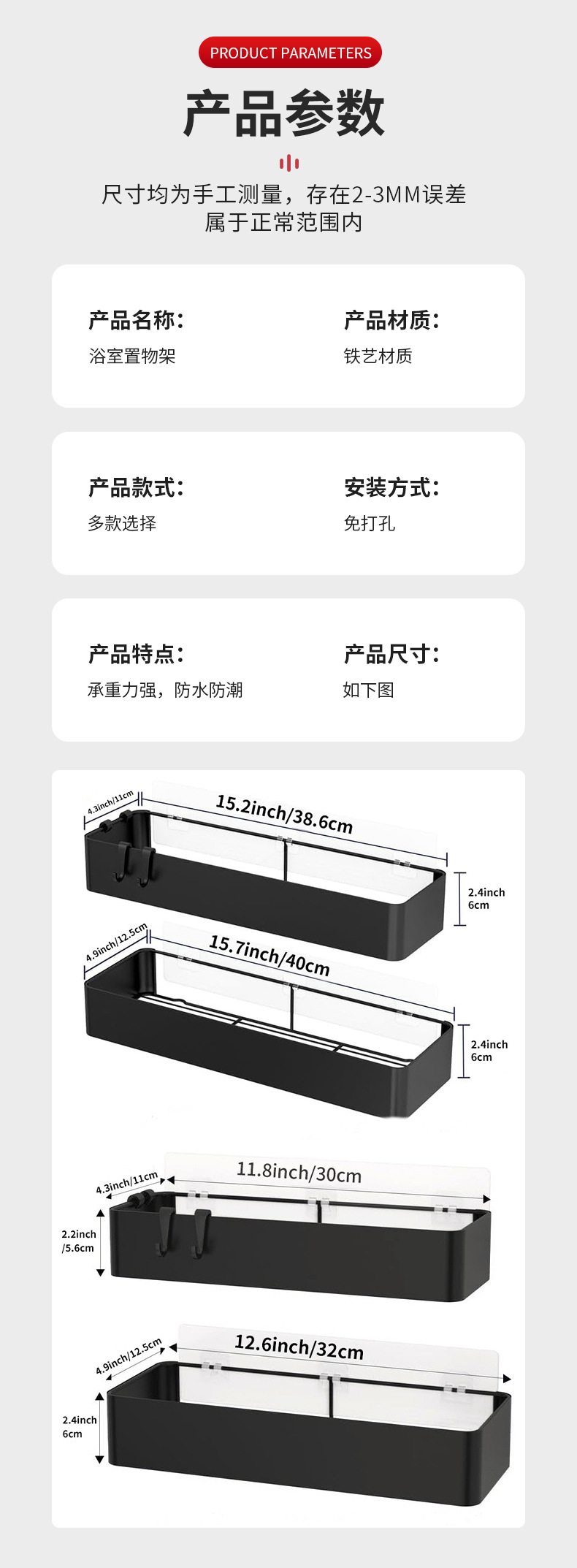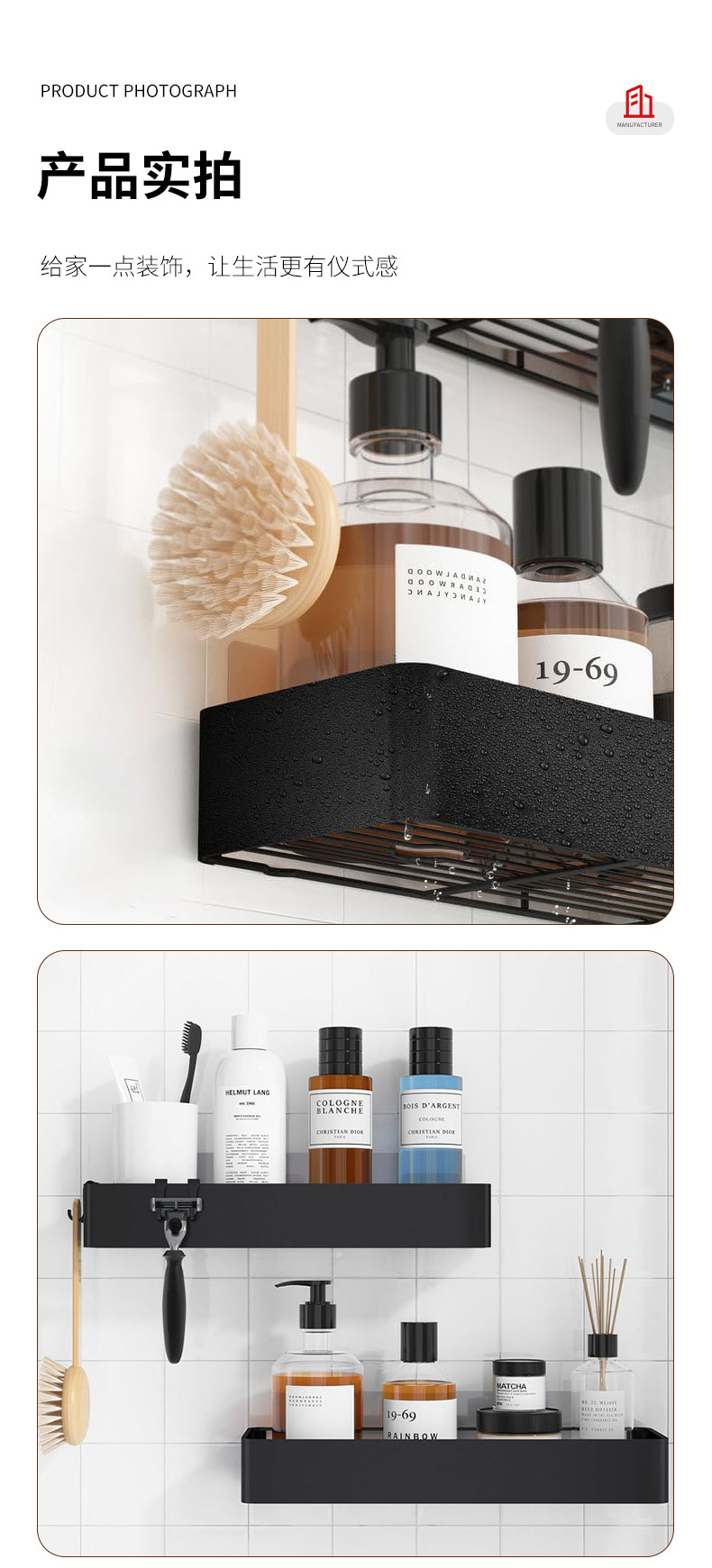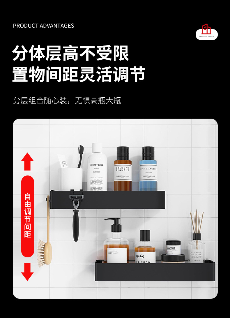 벽걸이 수납함, 욕실 수납 선반, 주방 수납 선반, 목욕용품 정리함 (무타공 설치)