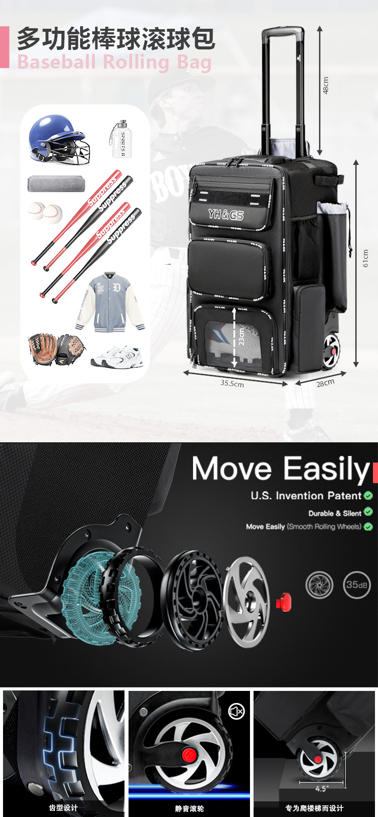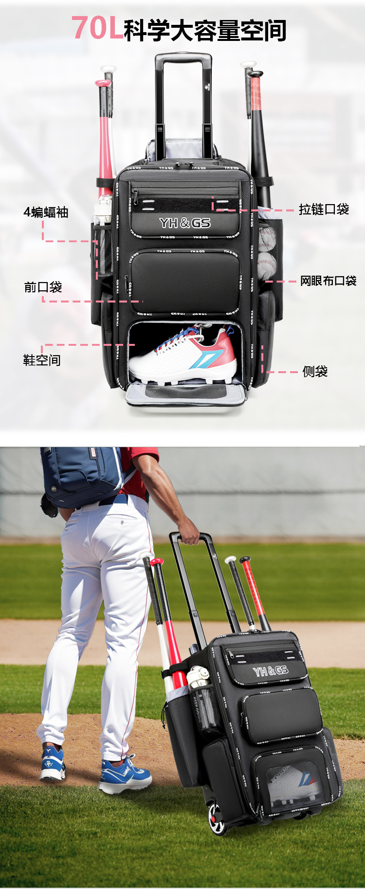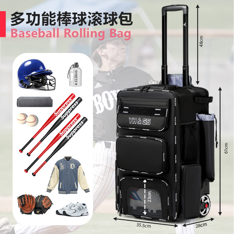 야외 스포츠 트롤리 가방 방수 야구 트롤리 가방 대용량 트롤리 케이스 남성 및 여성 캐주얼 다층 야구 가방스토어 가기