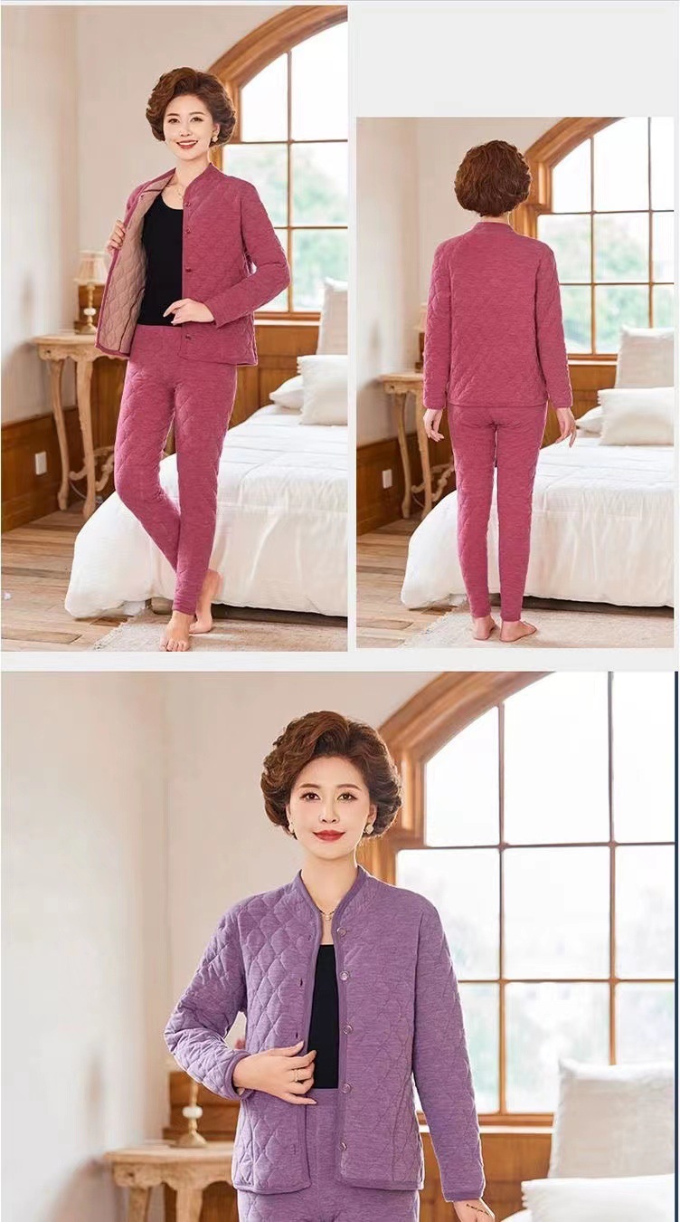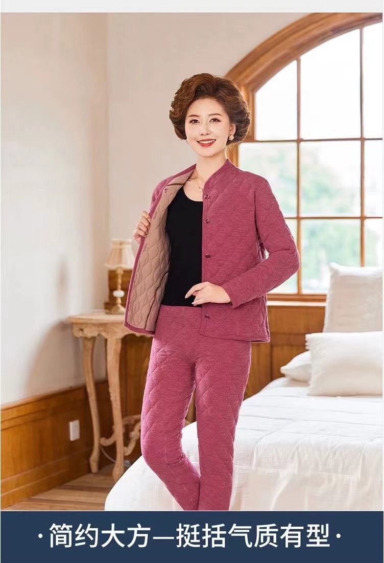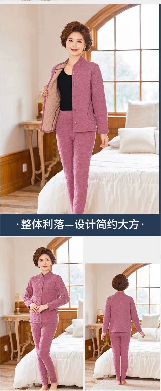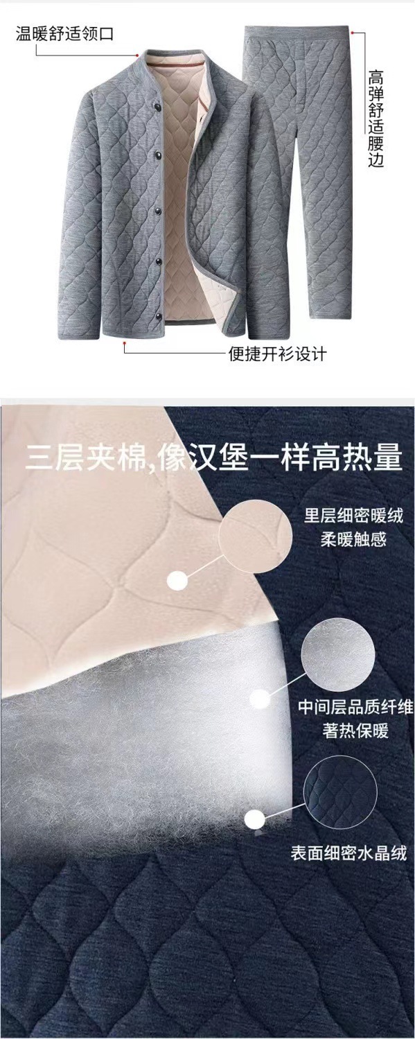 [산호 양털 3 층 퀼트] 가을 · 겨울 남녀 홈 의류 기모 중년 · 노인 따뜻한 잠옷 세트 두꺼워졌다