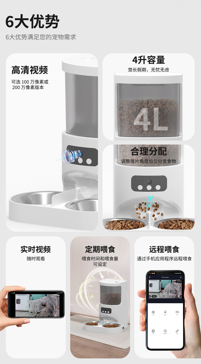 애완동물 자동 급식기, 고양이와 강아지 사료, 고양이 사료, 강아지 사료, 시간 및 양을 정해진 지능형 급식기, 완전 자동스토어 가기
