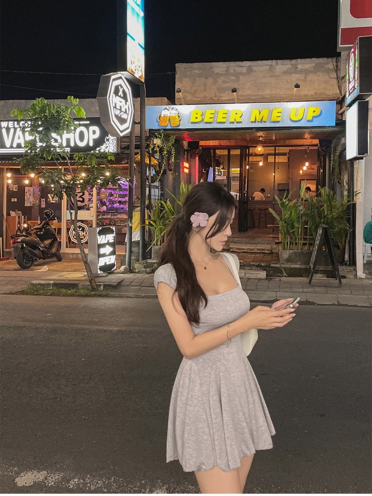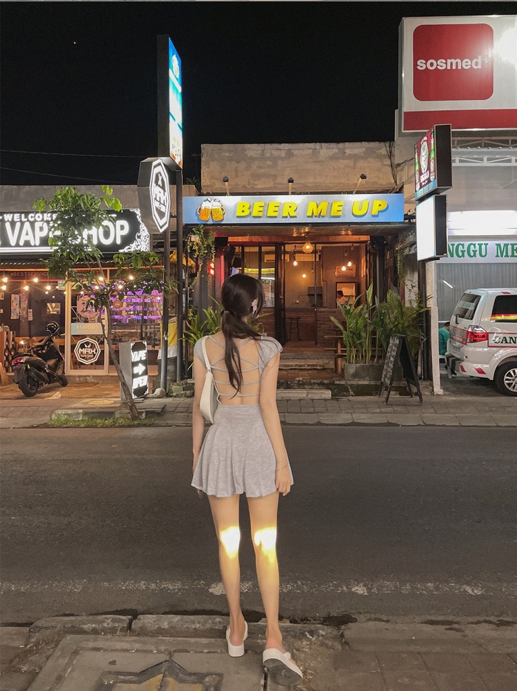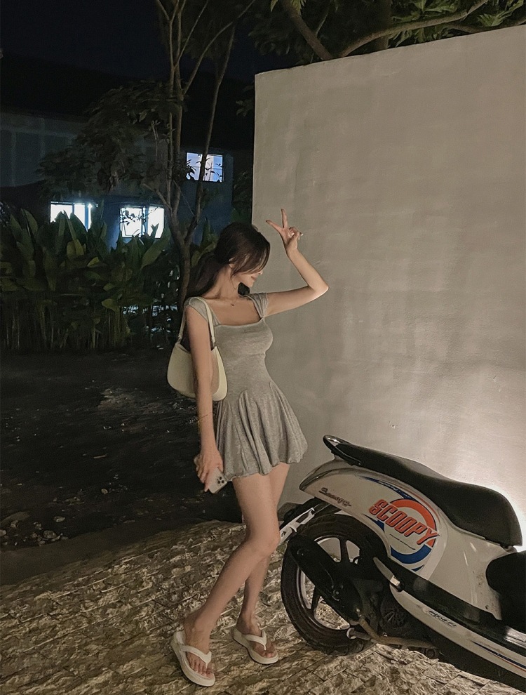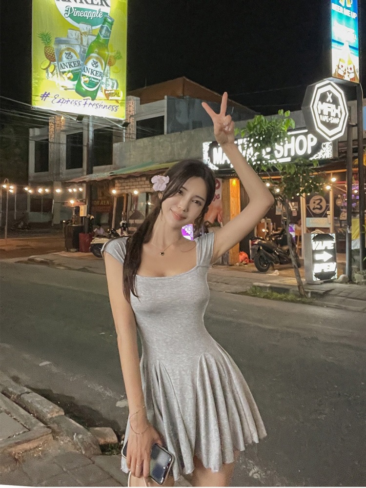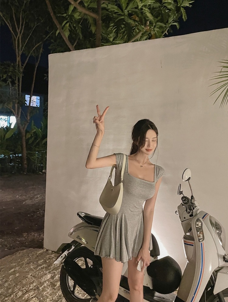 블랙 섹시 로우 컷 스퀘어 칼라 꽉 크로스 등이없는 원피스 여성의 중공 스티치 중간 길이 휴가 수영복스토어 가기