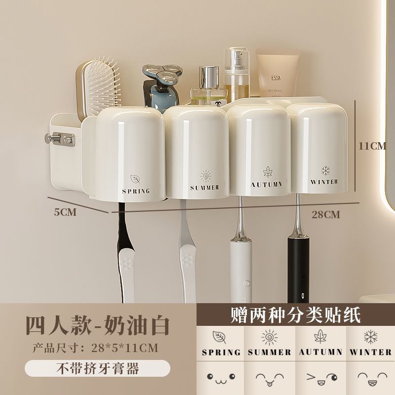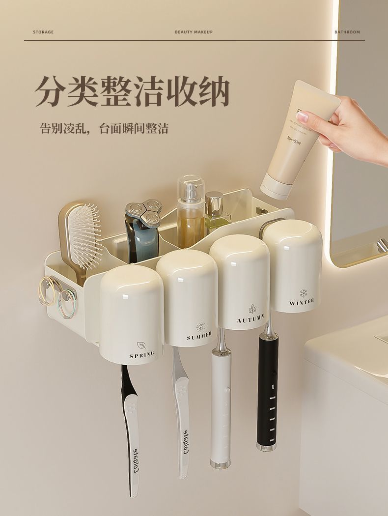 크림 화이트 라이트 럭셔리 칫솔 보관 랙 벽걸이 형 욕실 화장실 구멍 프리 칫솔질 입 컵 크로스 보더 치아 짜기스토어 가기