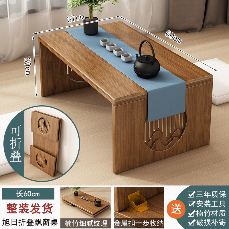 접이식 테이블 강 테이블 대나무 다다미 작은 커피 테이블 베이 창 테이블 침대 연구 책상 컴퓨터 낮은 테이블 새로운 중국 스타일