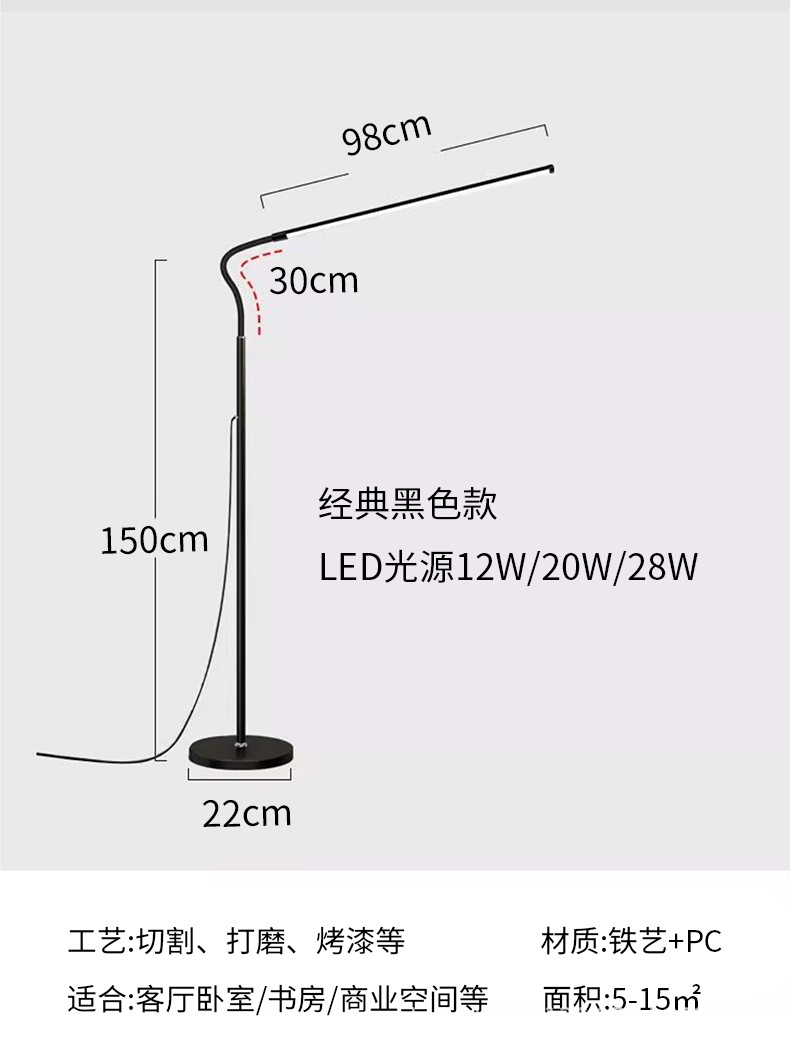 학생 눈 보호 LED 독서 플로어 램프 독서 및 학습 피아노 램프 거실 소파 침실 침대 옆 채우기 조명