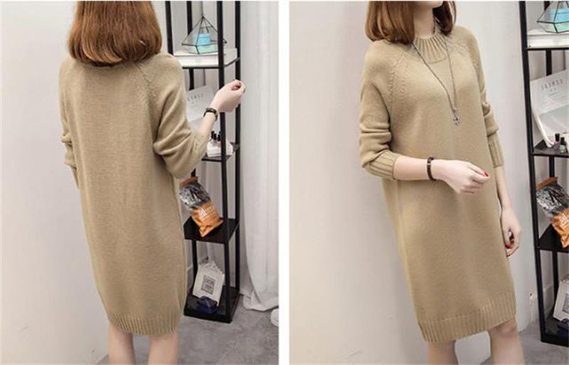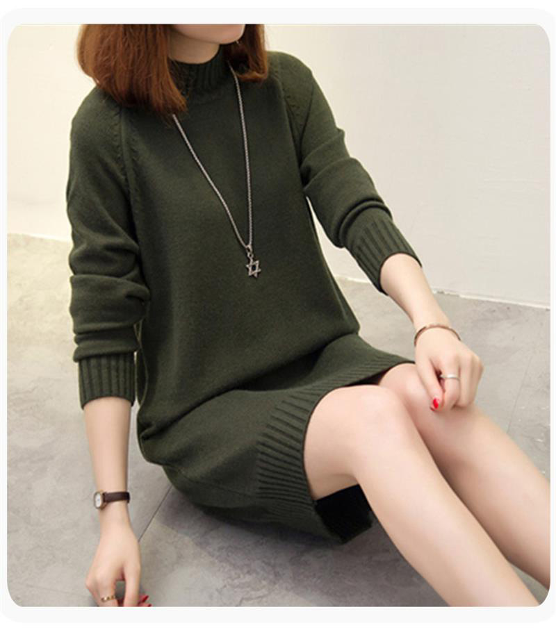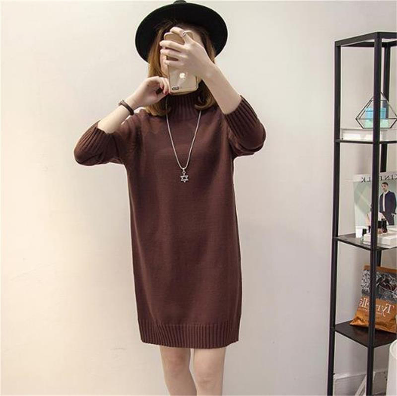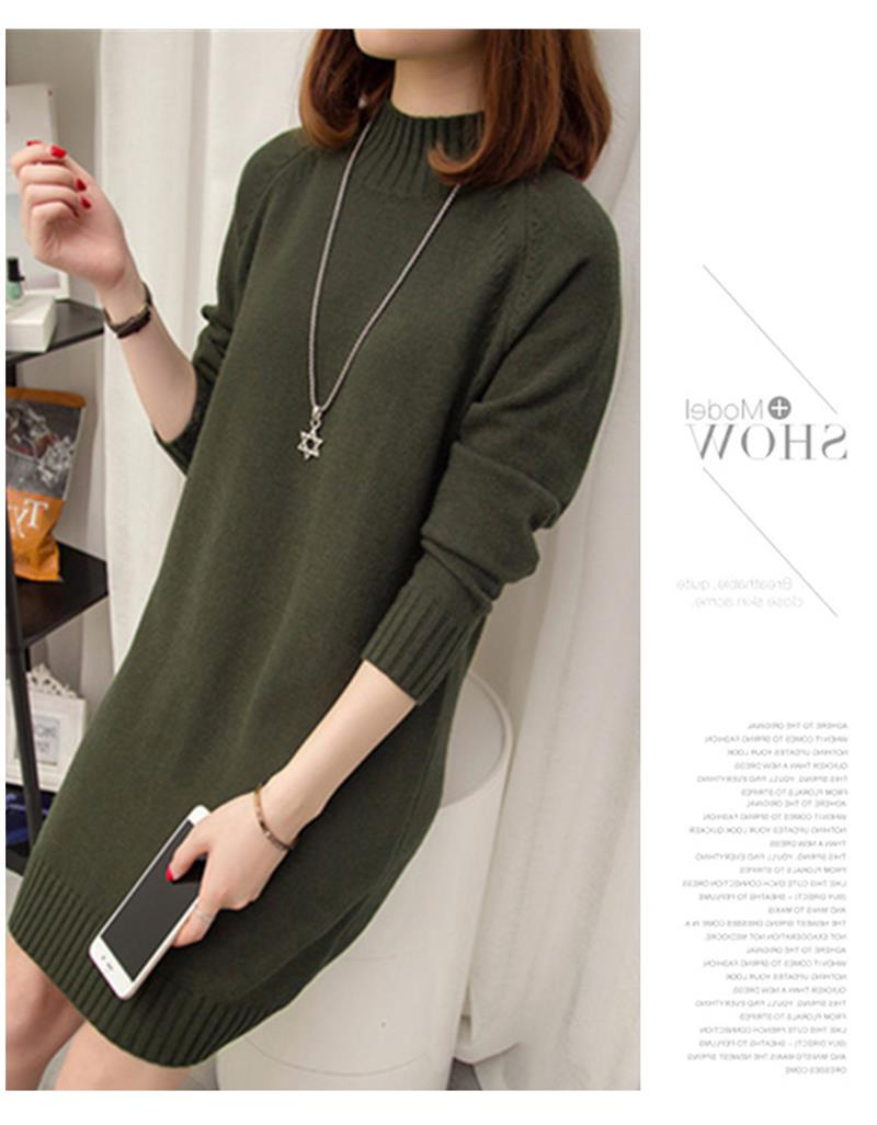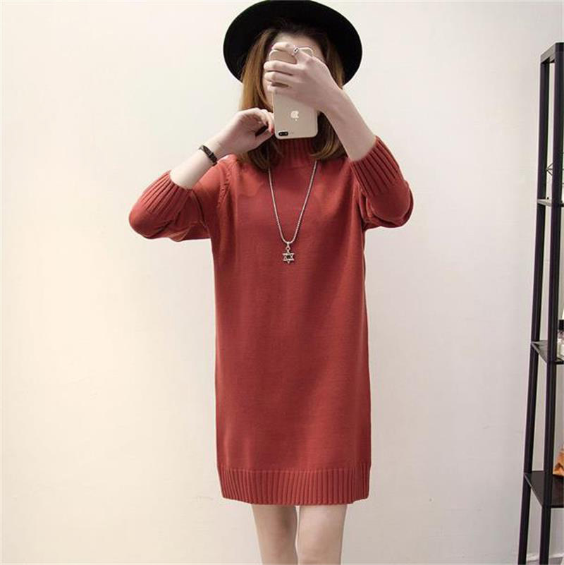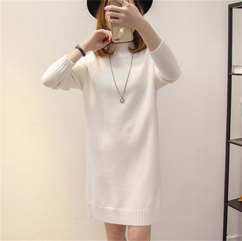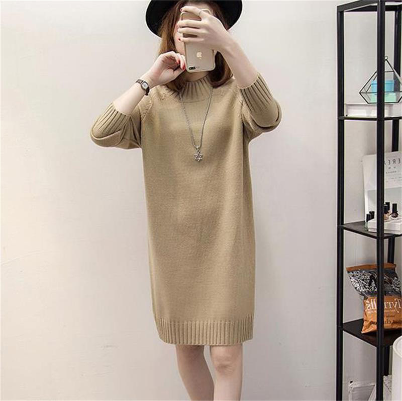 가을과 겨울 새로운 하프 터틀넥 터틀넥 스웨터 여성용 단색 느슨한 중간 길이 베이스 셔츠 중간 길이 니트 원피스