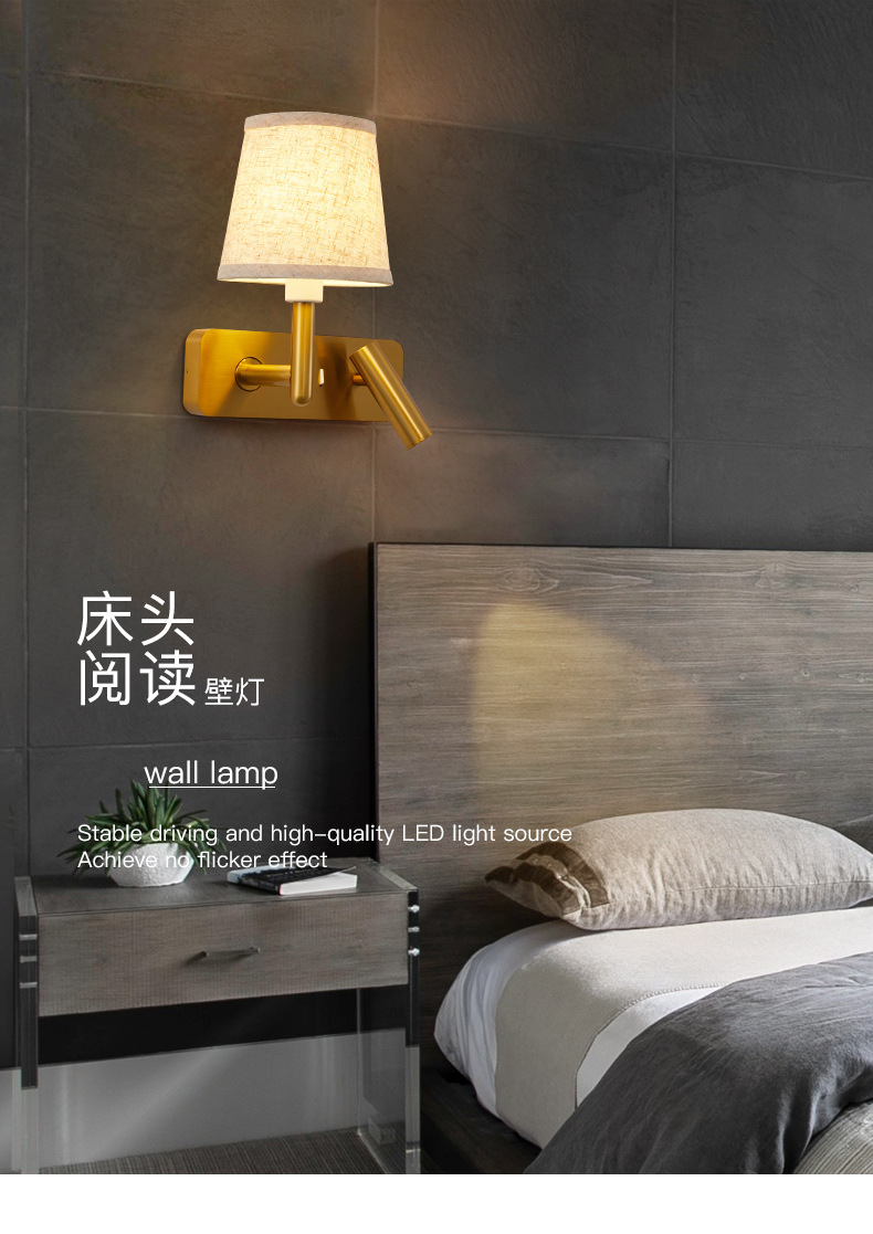 호텔 홈스테이 엔지니어링 벽 램프 침대 옆 램프 벽 스포트라이트 독서 램프 유행 간단한 침실 빛 고급 장식 벽 램프