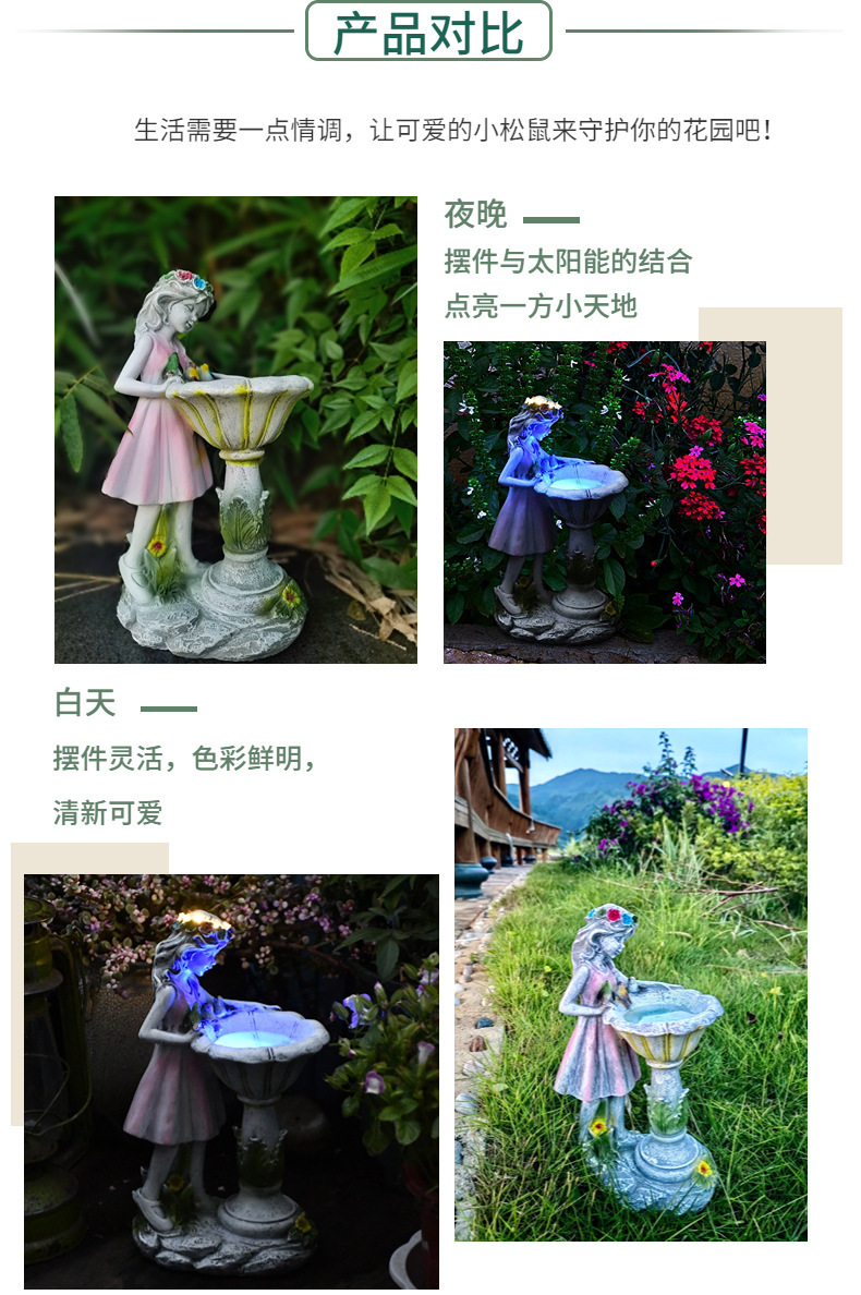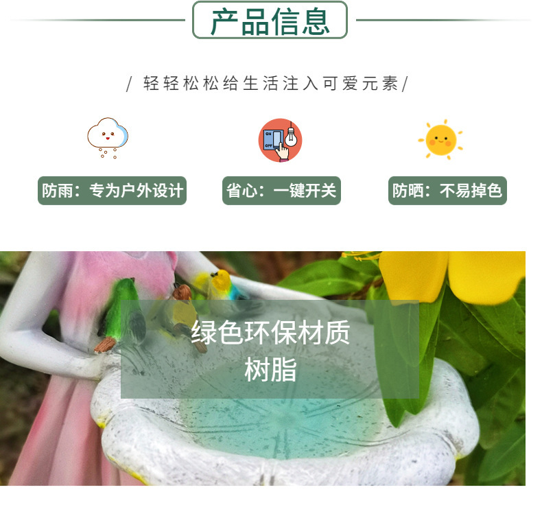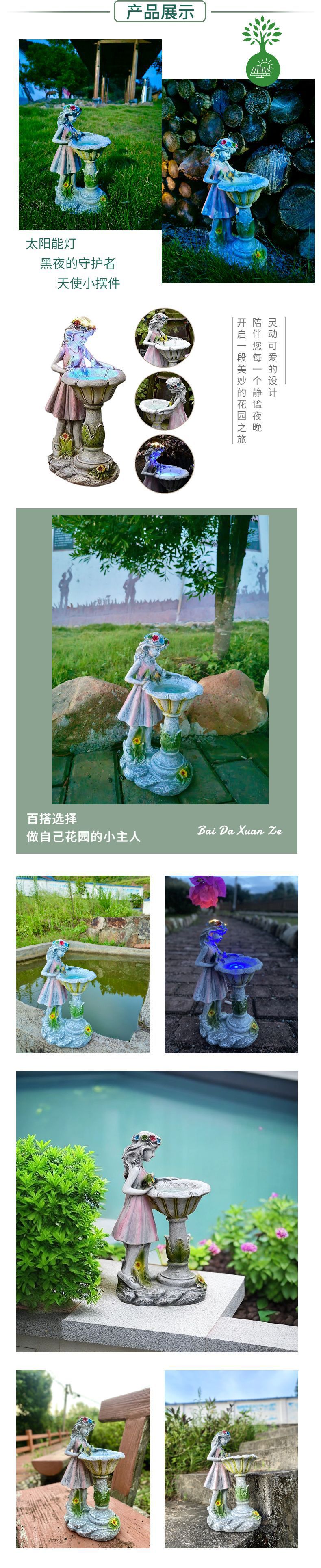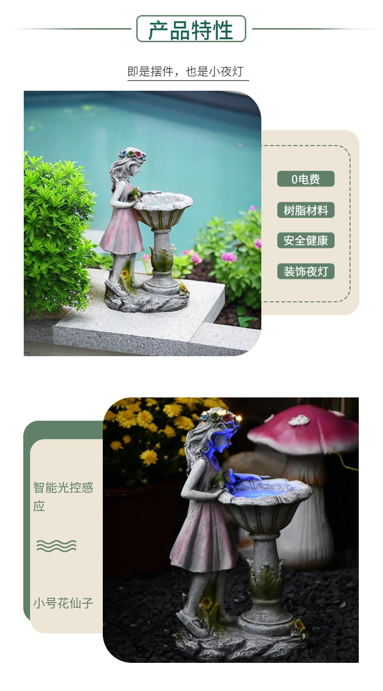 도매 국경을 넘는 야외 정원 장식 장식품 천사 인물 조각상 꽃 요정 인물 태양열 정원 수지