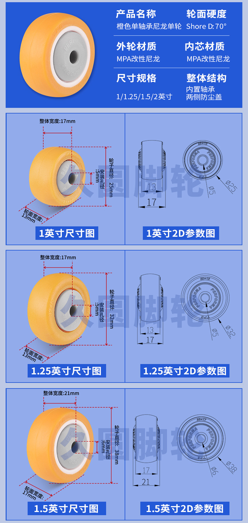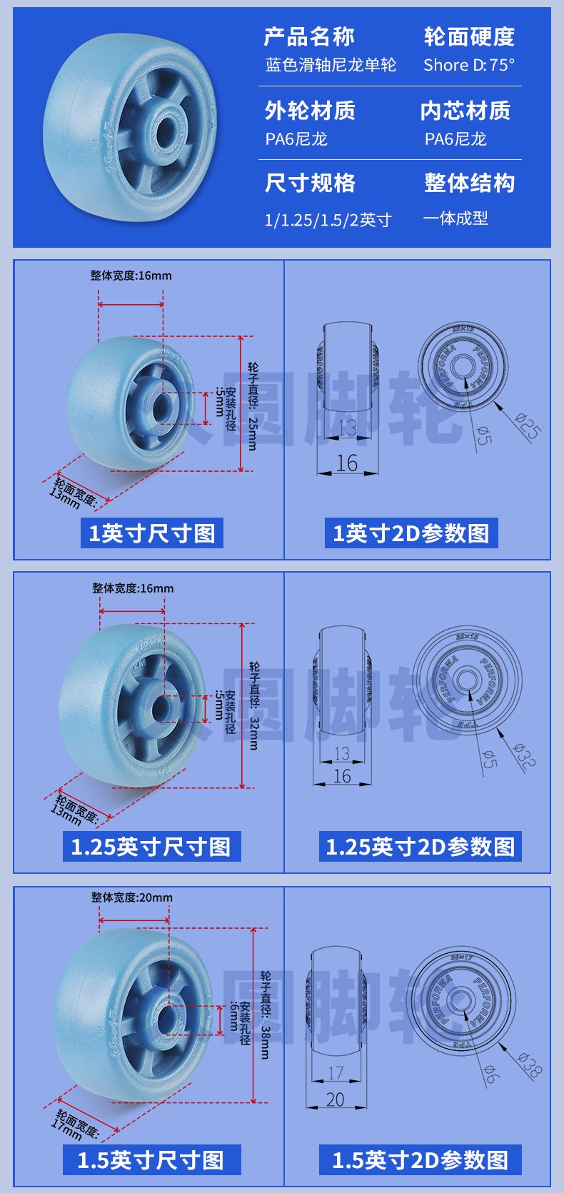 블루 PA6 나일론 풀리 내마모성 고온 휠 베이킹 오븐 식기 세척기 전기 장비 롤러 액세서리 1/2 인치스토어 가기