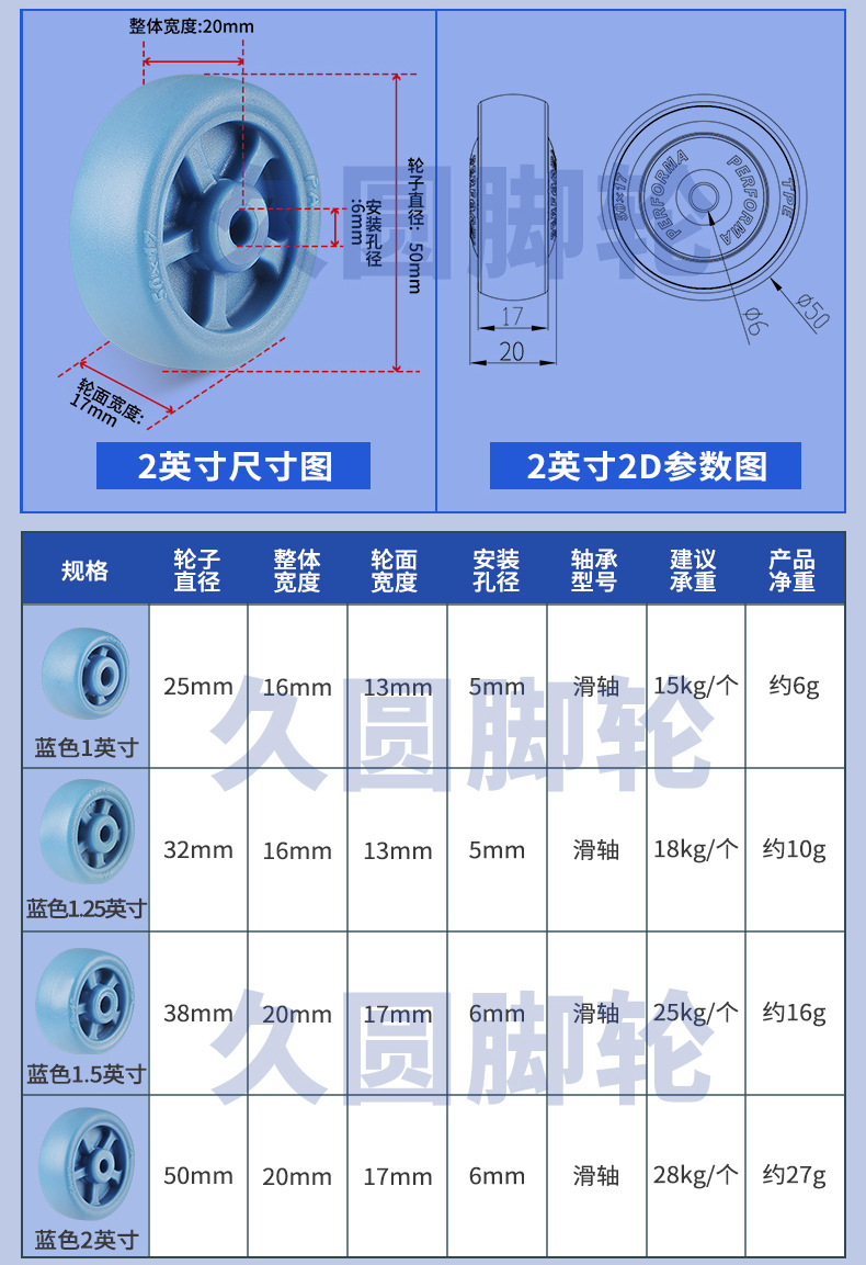블루 PA6 나일론 풀리 내마모성 고온 휠 베이킹 오븐 식기 세척기 전기 장비 롤러 액세서리 1/2 인치