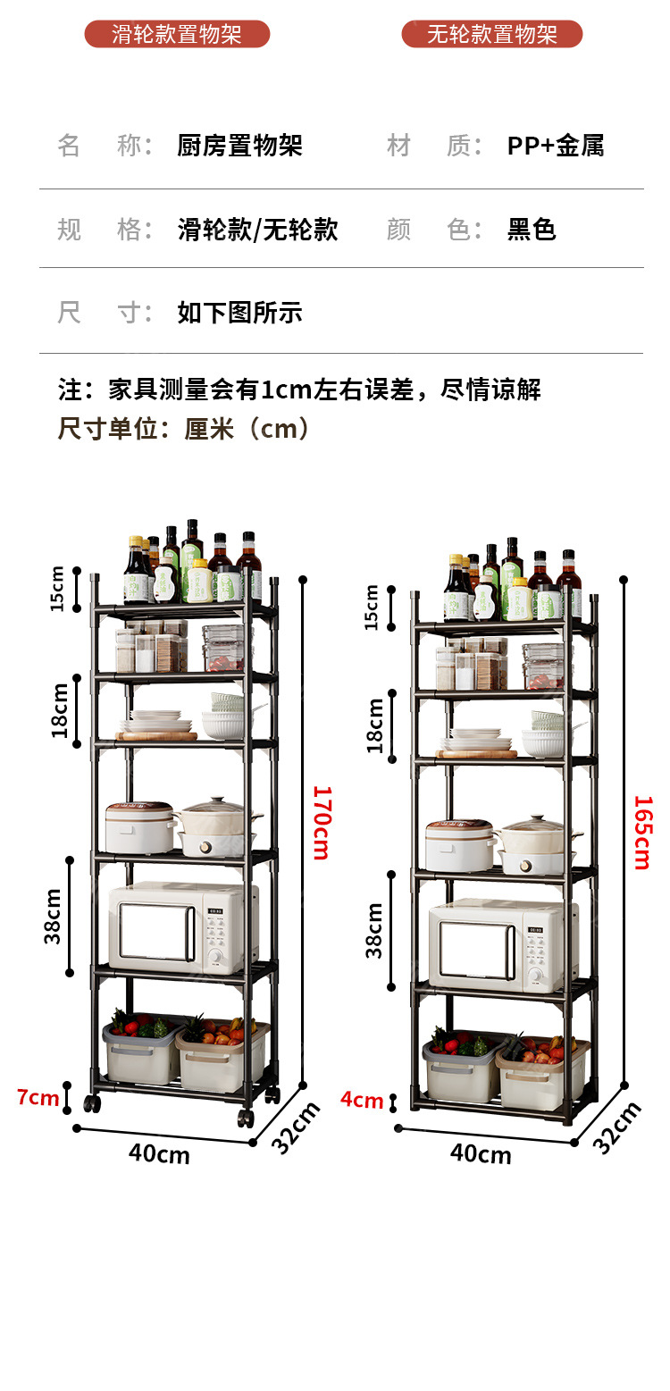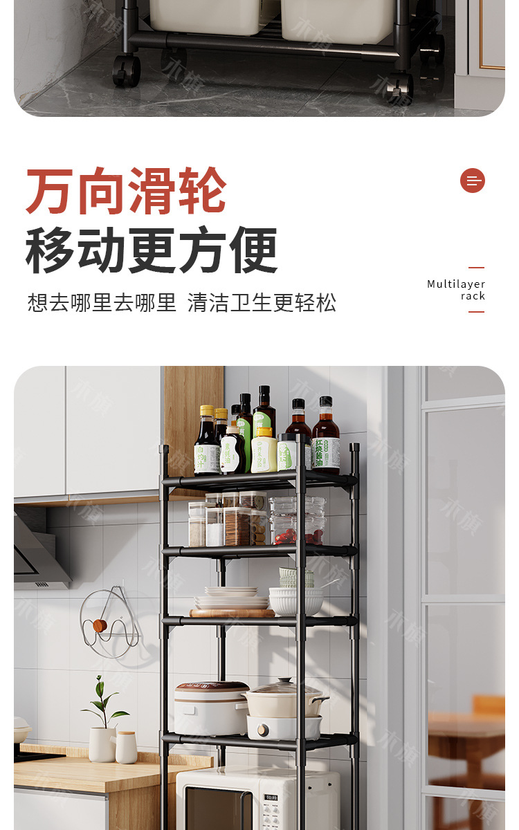 대용량 주방 수납 선반 다층 수납 가정용 다기능 pp 금속 이동식 바닥형 수납 선반