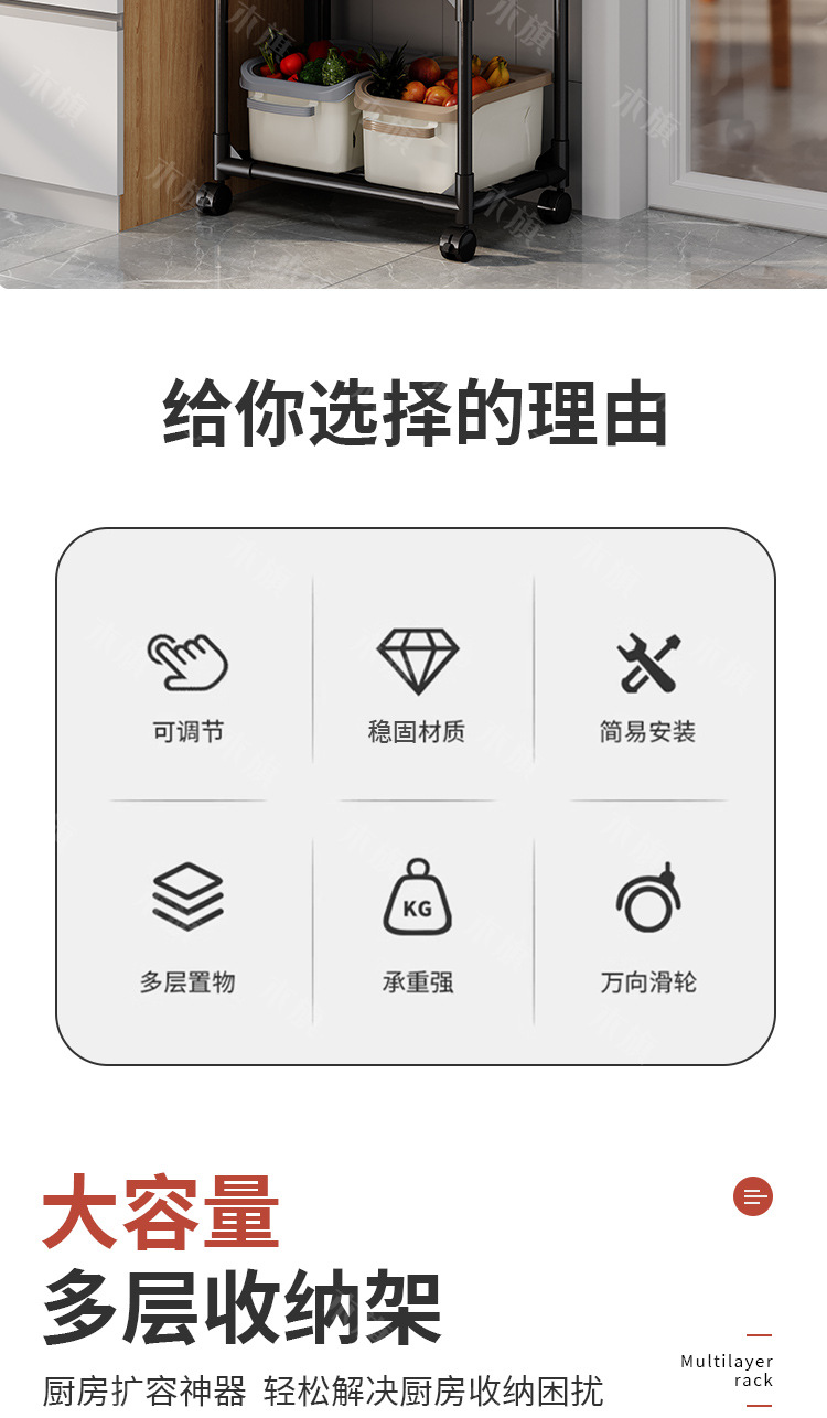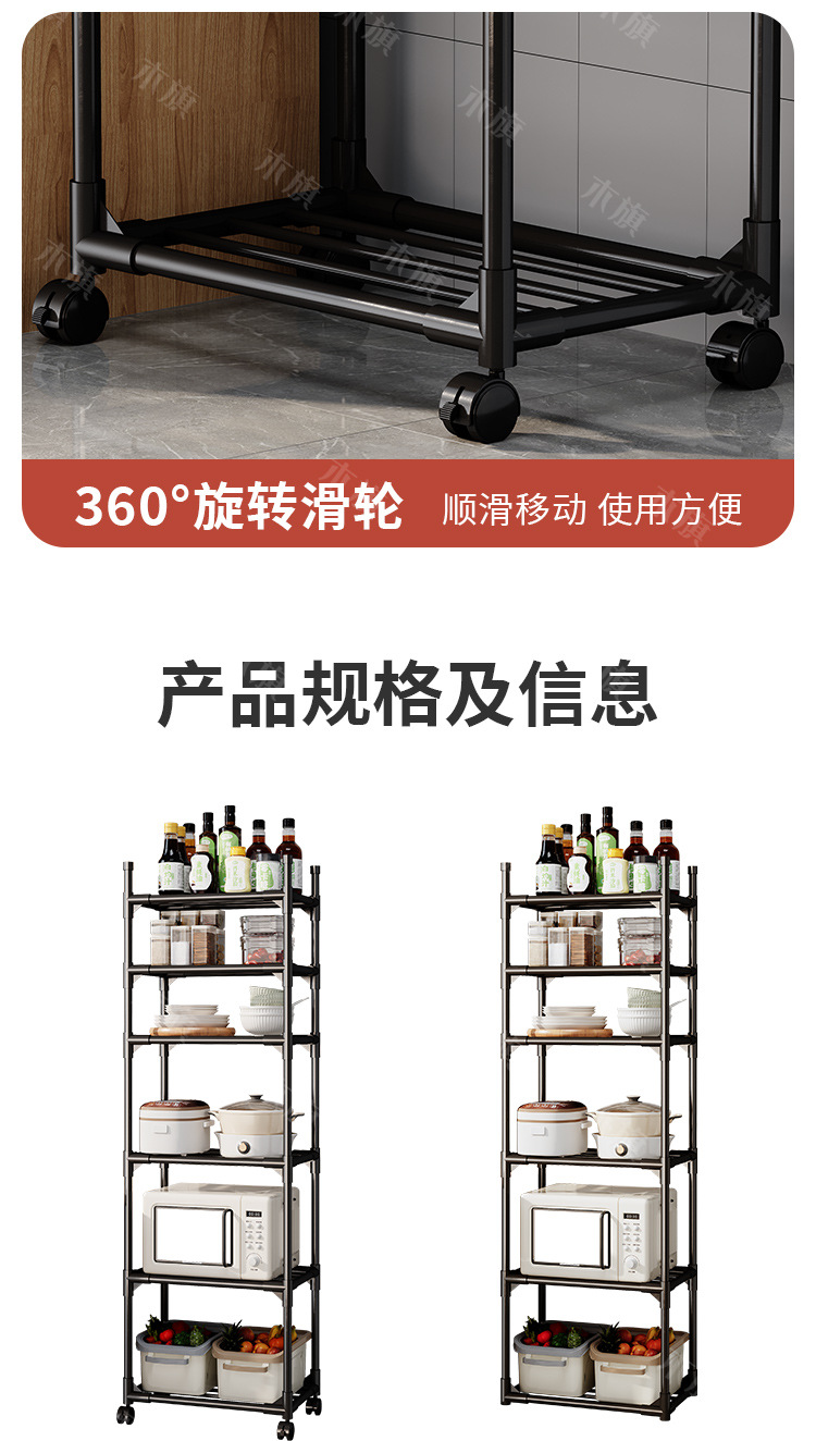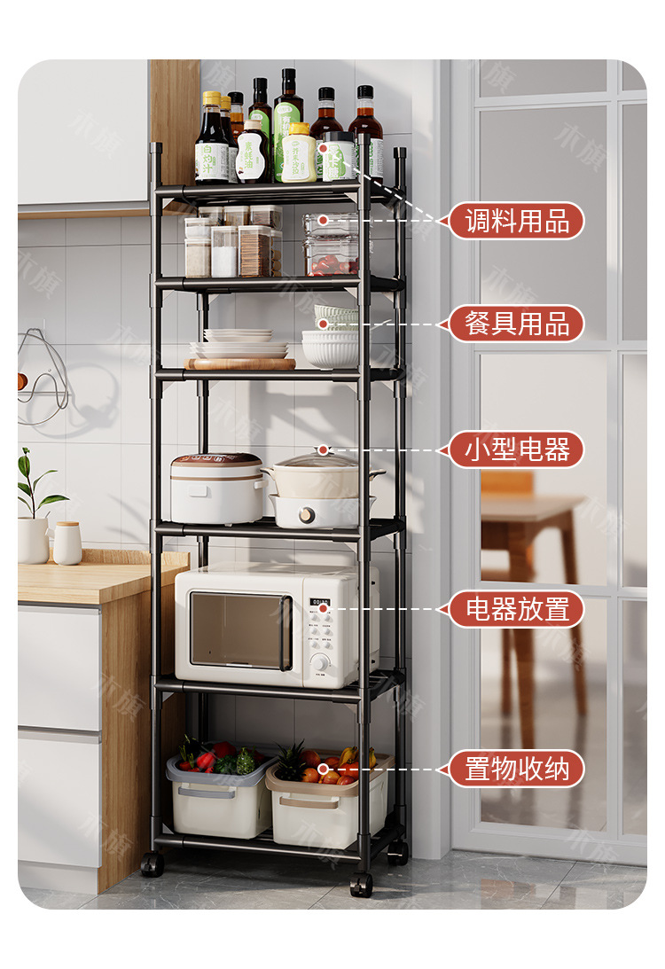 대용량 주방 수납 선반 다층 수납 가정용 다기능 pp 금속 이동식 바닥형 수납 선반스토어 가기