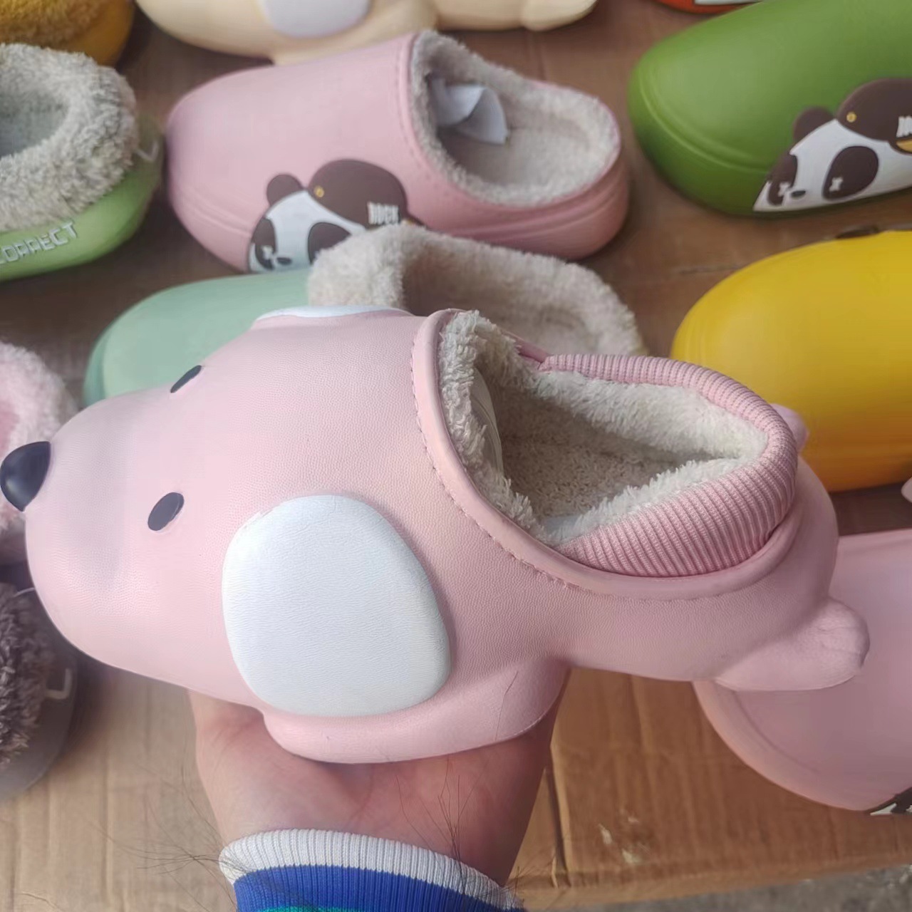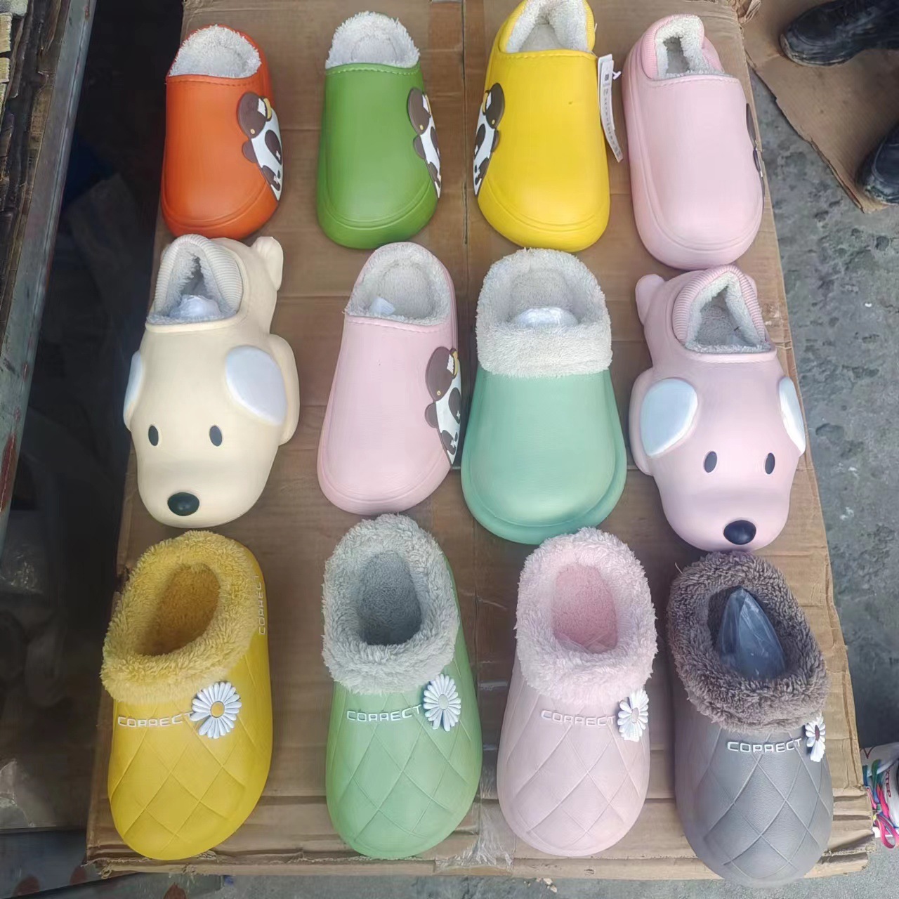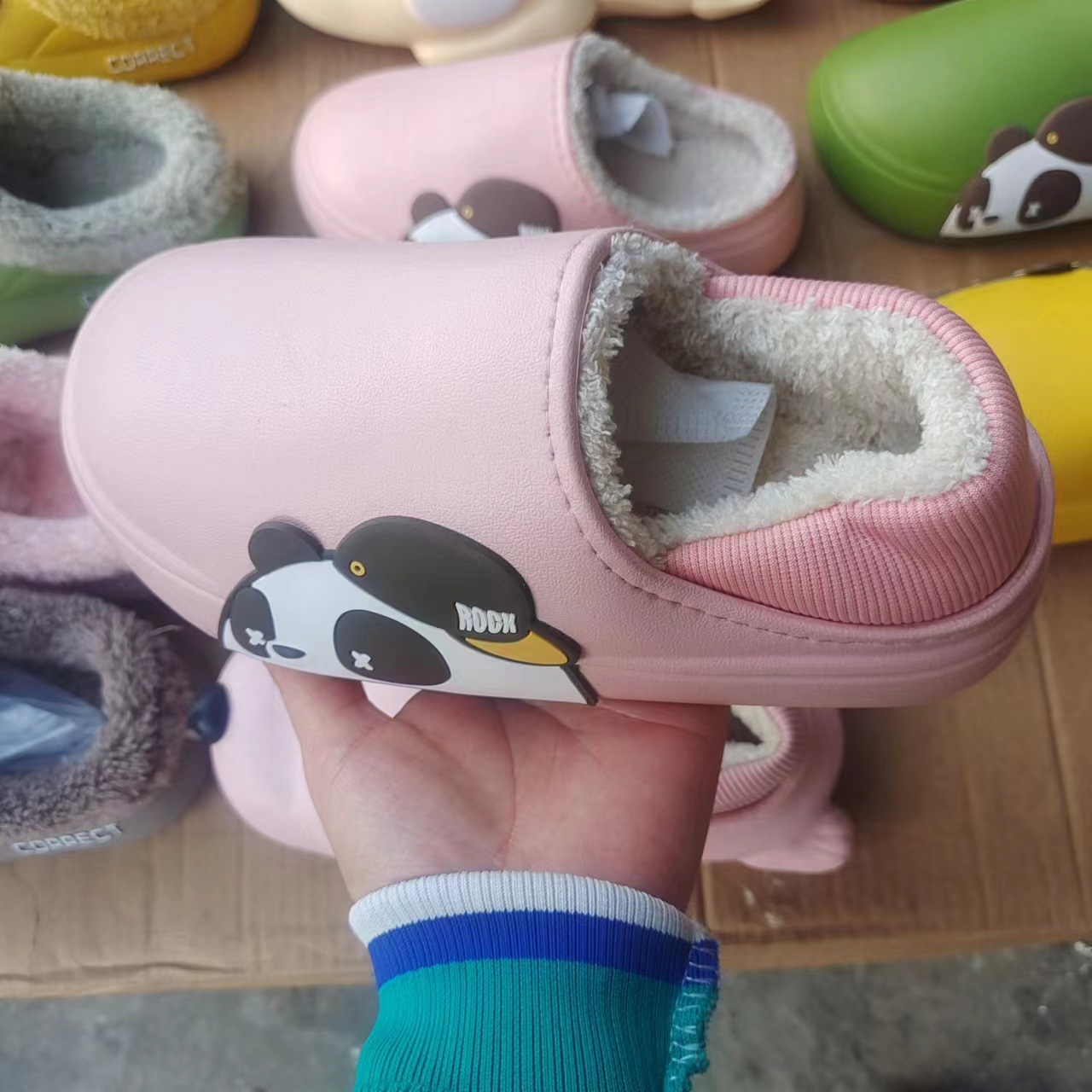 방수 면 슬리퍼 2023 가정용 귀여운 실내 두꺼운 바닥 미끄럼 방지 봉제 면 슬리퍼가있는 소녀의 견인 가방