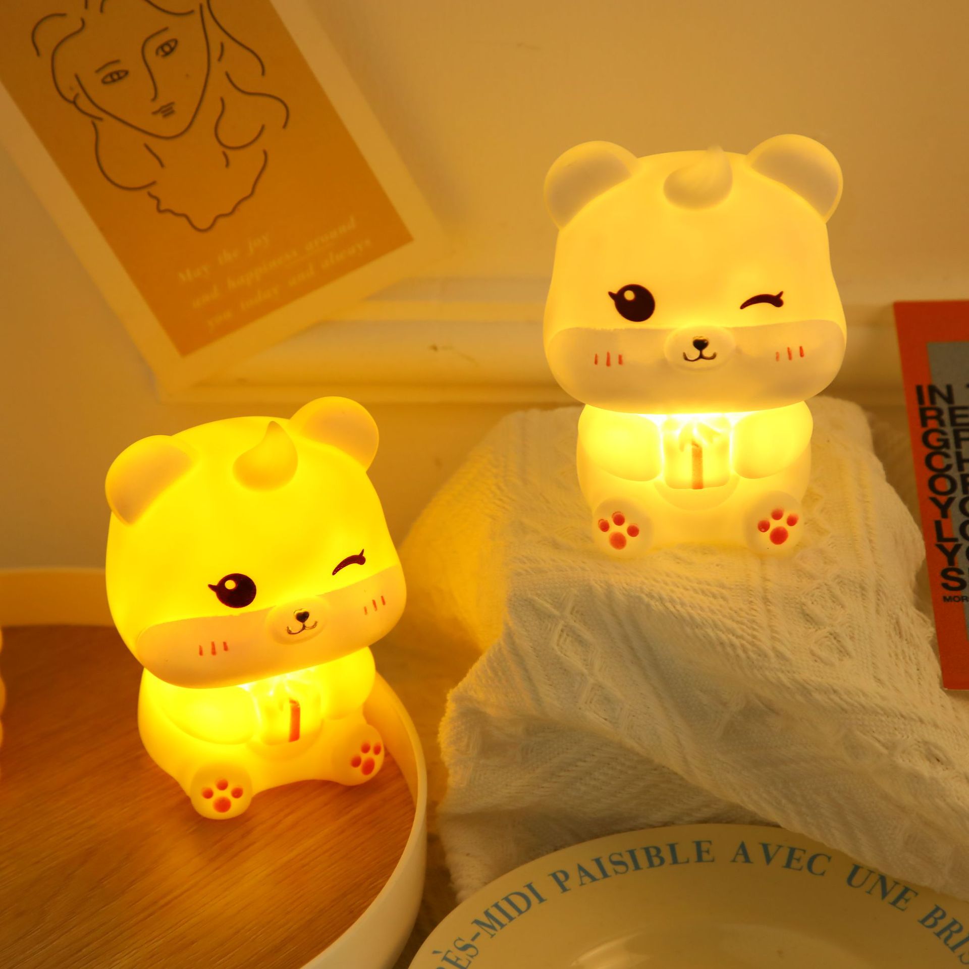 만화 곰 귀여운 선물 곰 비닐 야간 조명 침실 머리맡 수면 작은 장식품 생일 선물 도매