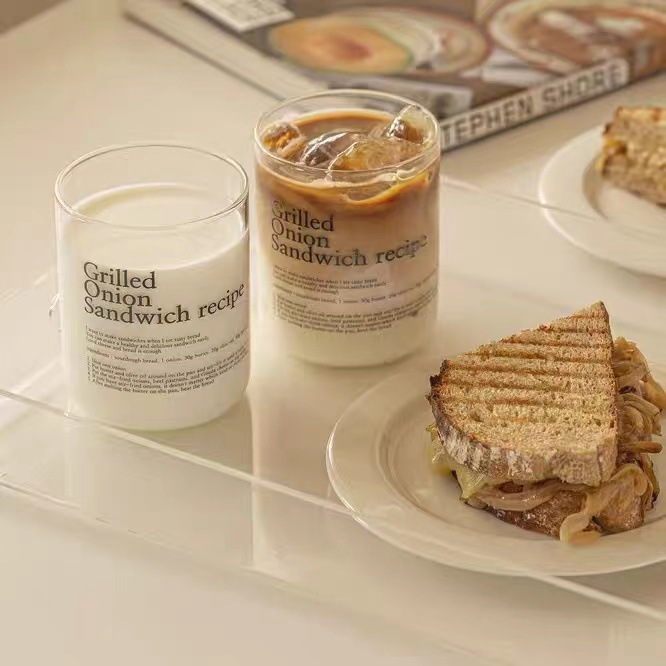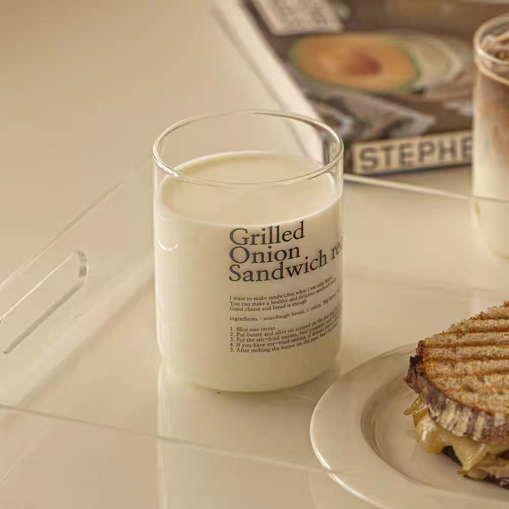 간단한 고급 영문자 스타일 유리 커피 컵 높은 붕규산염 고온 방지 아침 식사 컵 우유 컵 주스