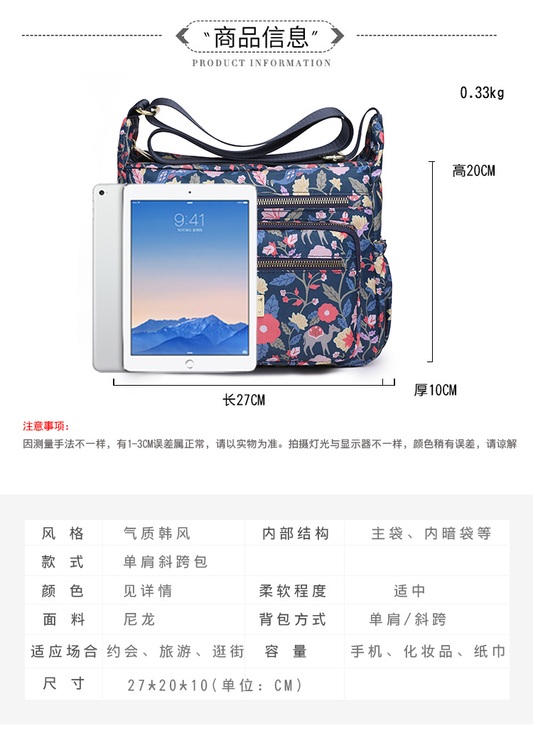 크로스보더 패션 프린트 나일론 원숄더백 여성용 가방 신상 대용량 크로스백 엄마 가방 옥스포드 원단 여성용 가방