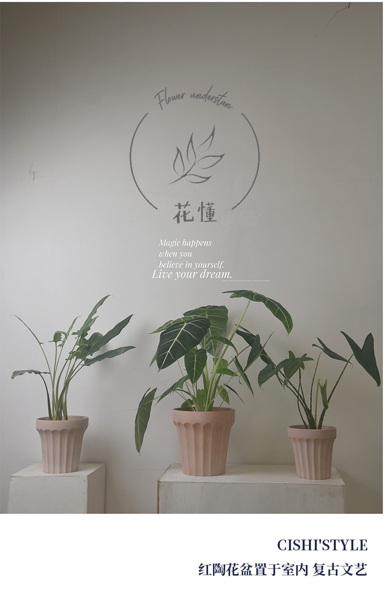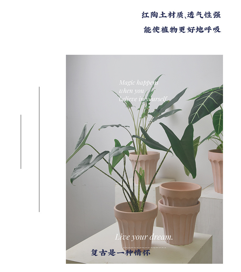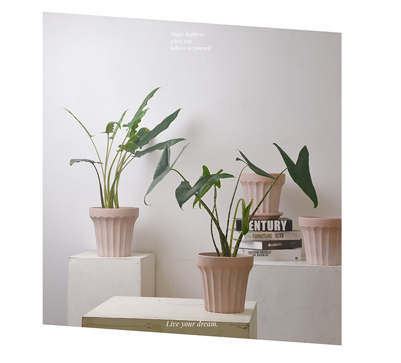 원자 간단한 줄무늬 빨간 도자기 화분 통기성 흡수성 다육 난초 아스파라거스 가정 실내 안뜰 제조 업체 특별 가격스토어 가기