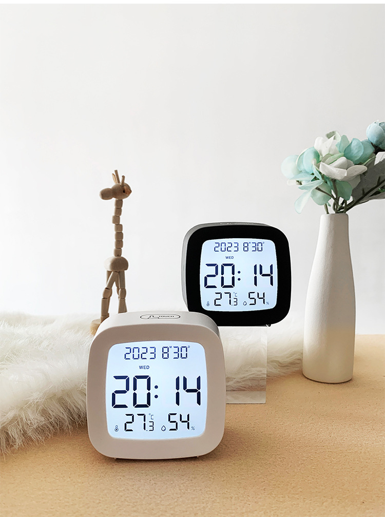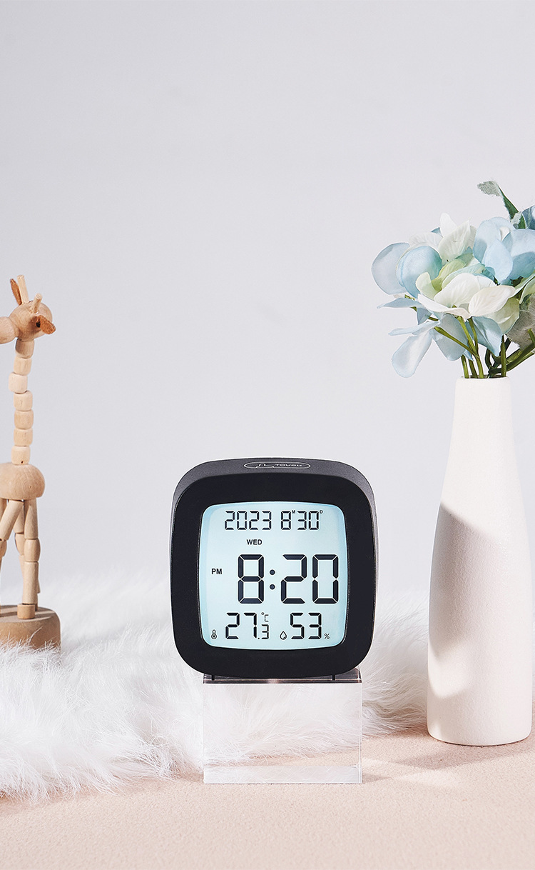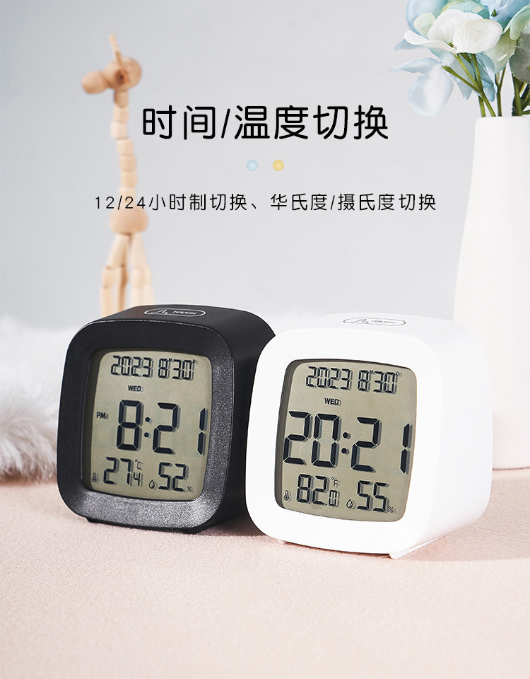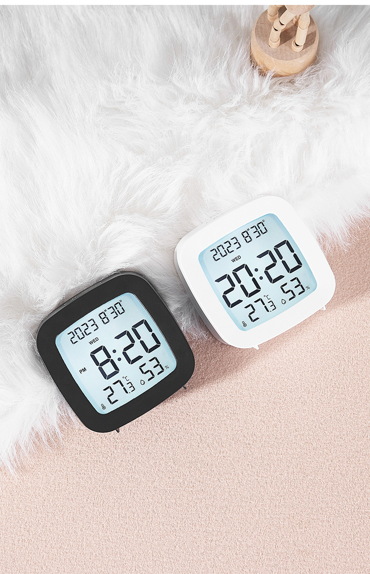 간단한 다기능 시계 온도 습도 작은 LCD 시계 학생 시계 창조적 인 침대 옆 알람 시계