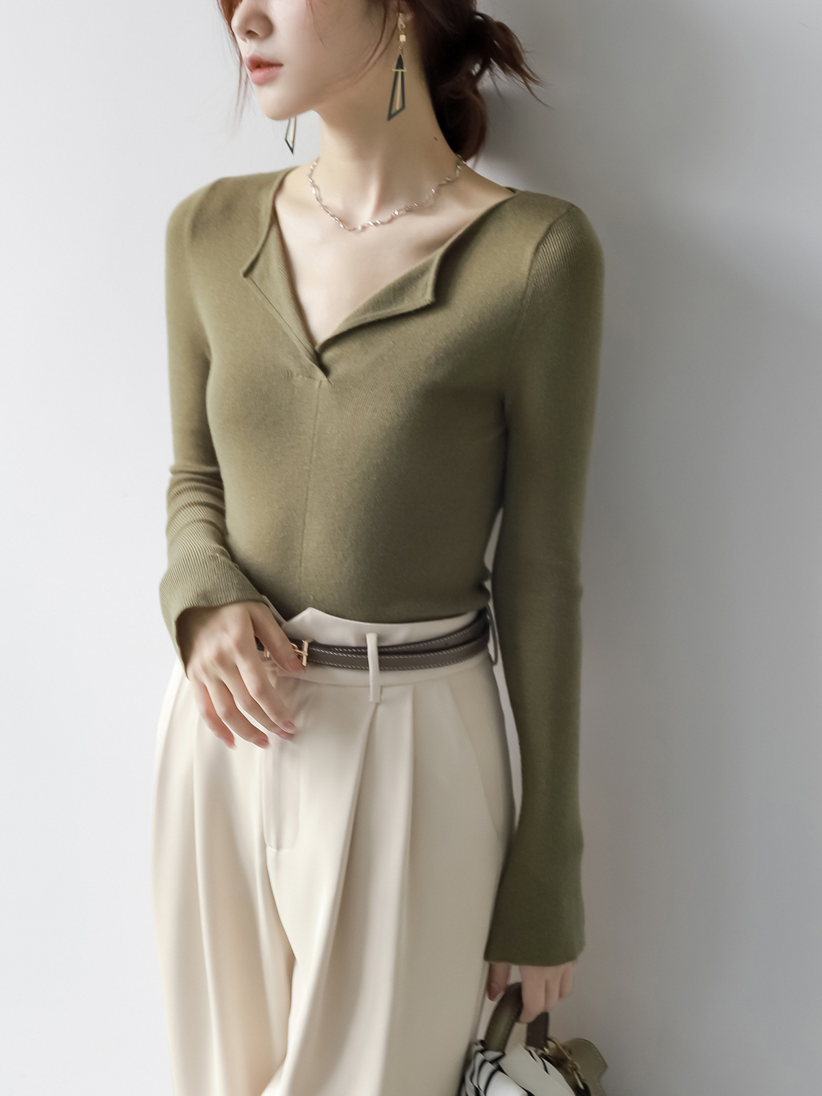 MZOXMO 젠틀 탑 초가을 캐시미어 우아한 모든 매치 게으른 울 스웨터 디자인 심플 니트 스웨터스토어 가기