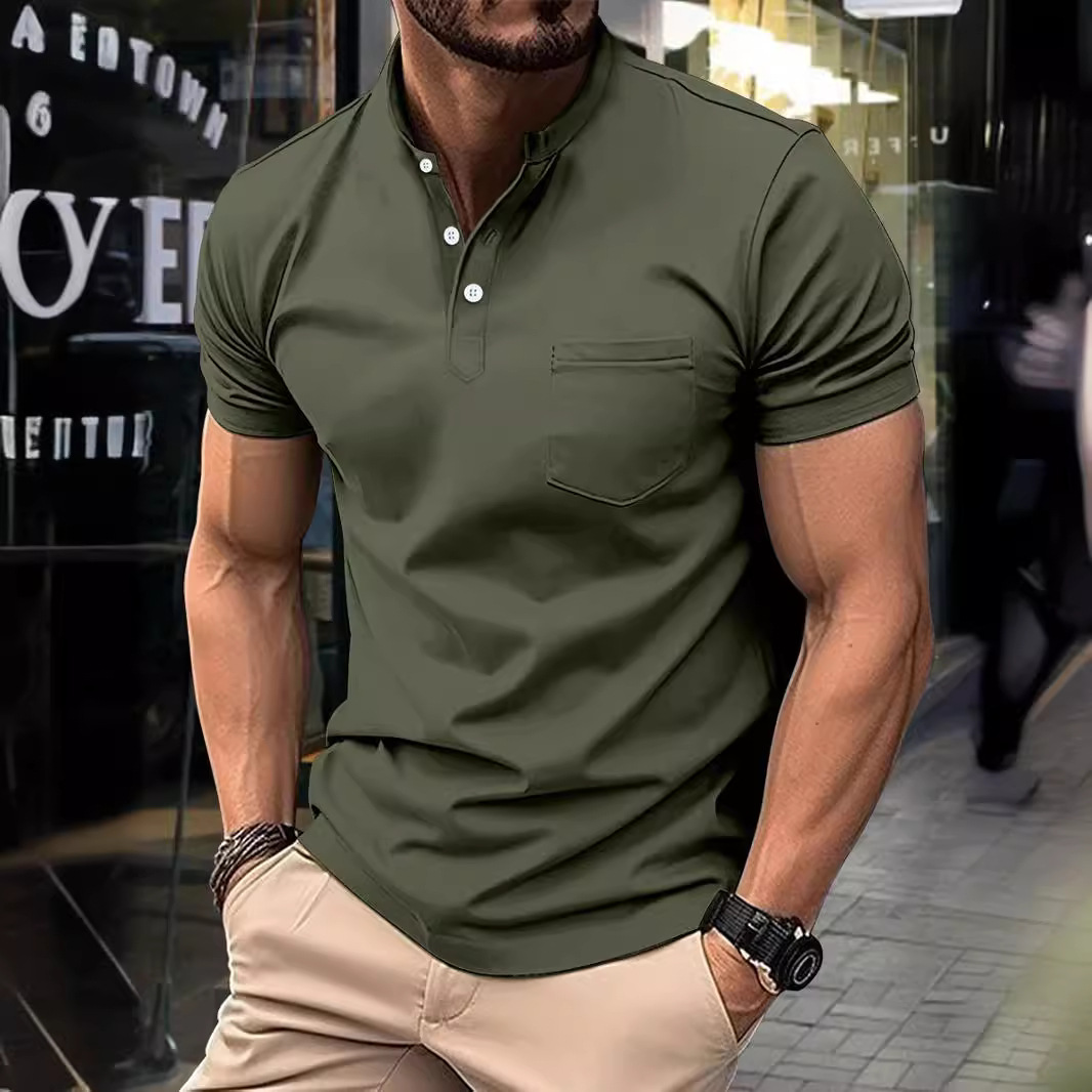 새로운 2025 크로스 보더 스포츠 근육 남성 남성 티셔츠 슬림 아메리칸 헤비 스탠드 칼라 제조업체 재고 있음스토어 가기