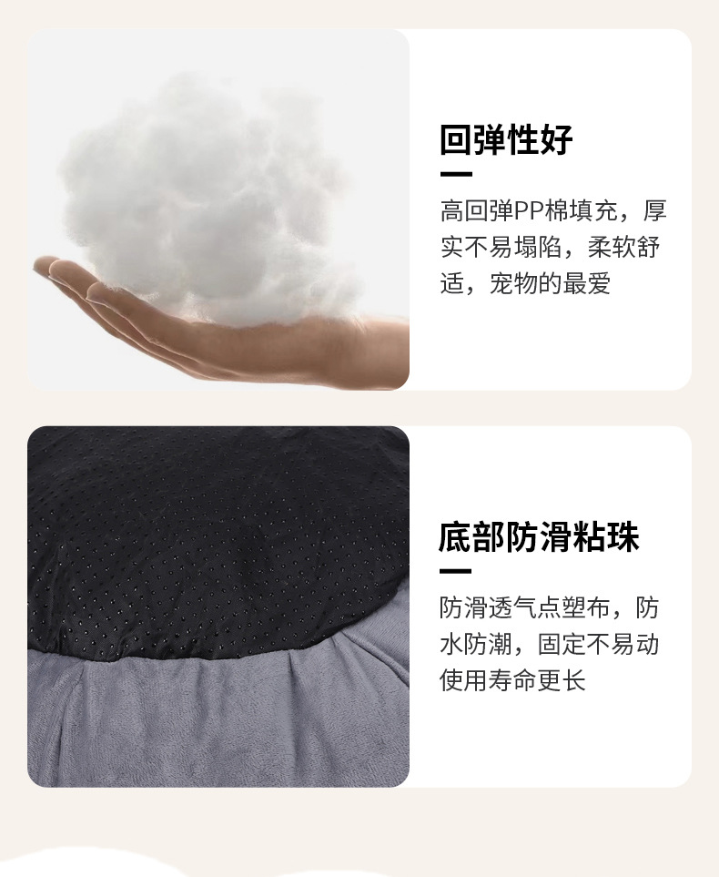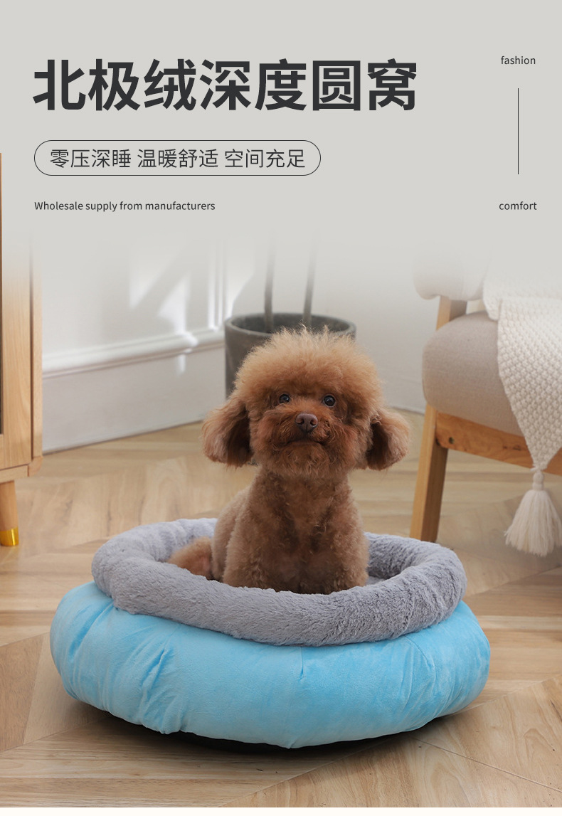 겨울용 두꺼운 북극털 고양이 둥지, 깊은 원형 둥지, 가정용 강아지 수면 매트, PP면 소재의 두꺼운 미끄럼 방지 애완동물 둥지