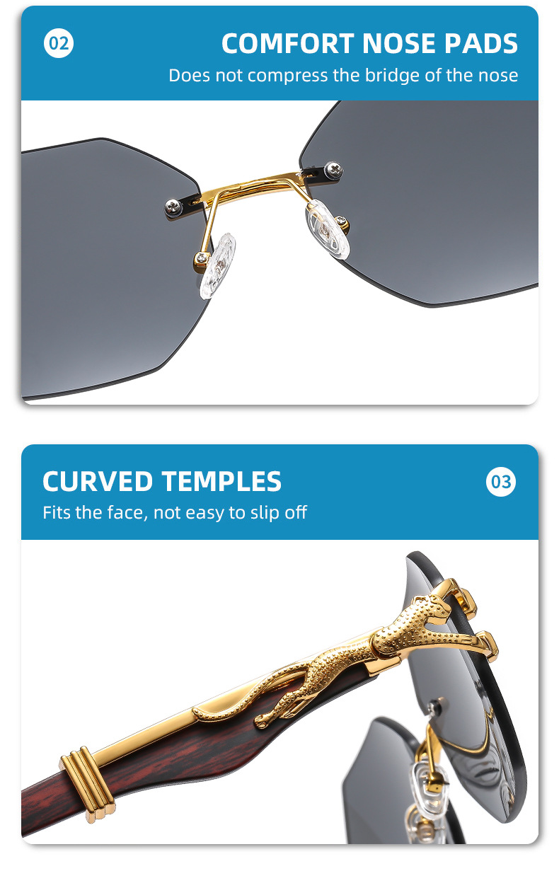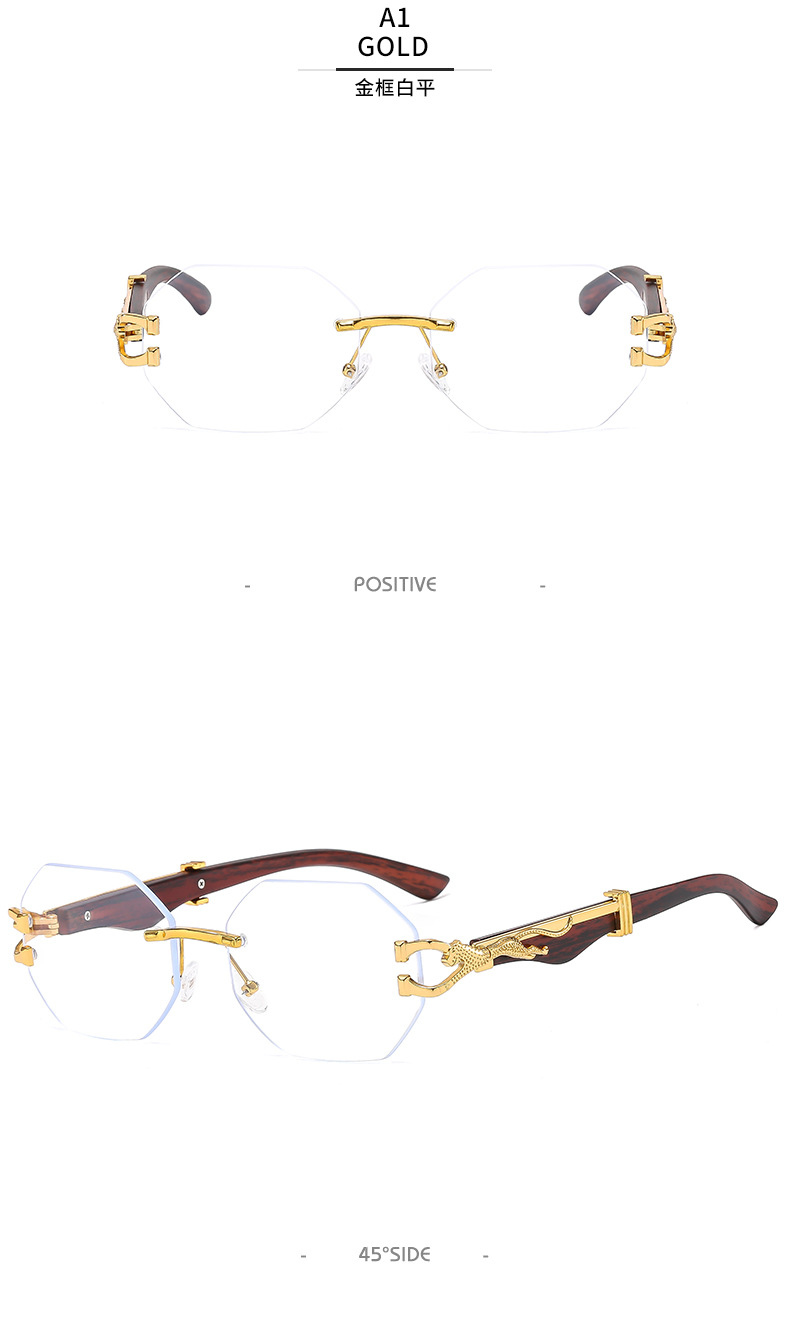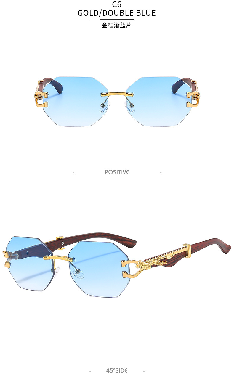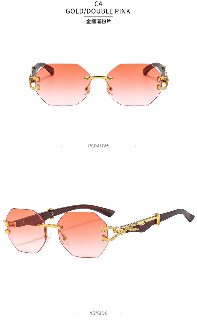 2023 유럽 및 미국 프레임리스 트림 선글라스 패션 박스 비치 선글라스 트렌디 한 표범 장식 프레임 안경