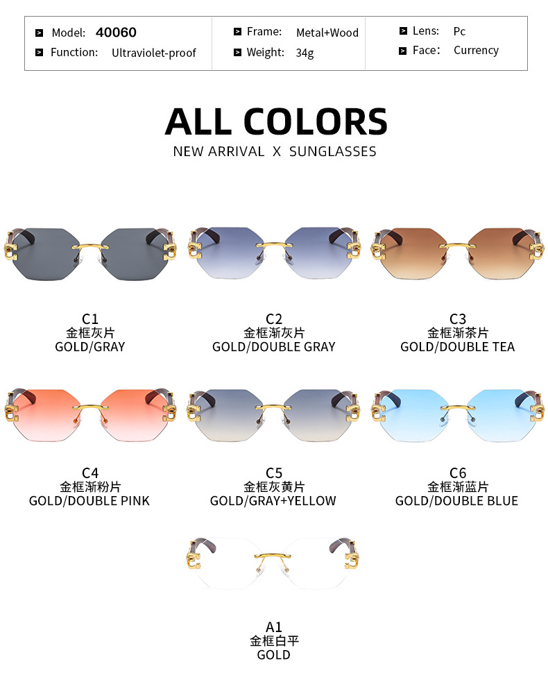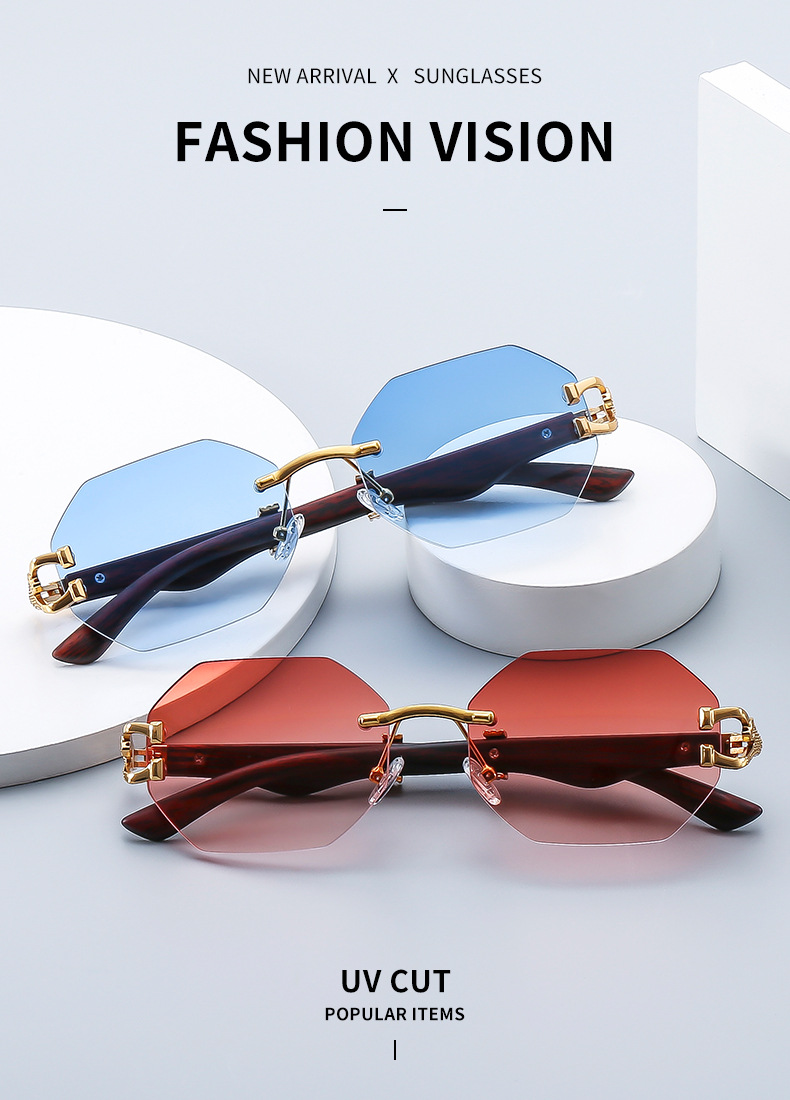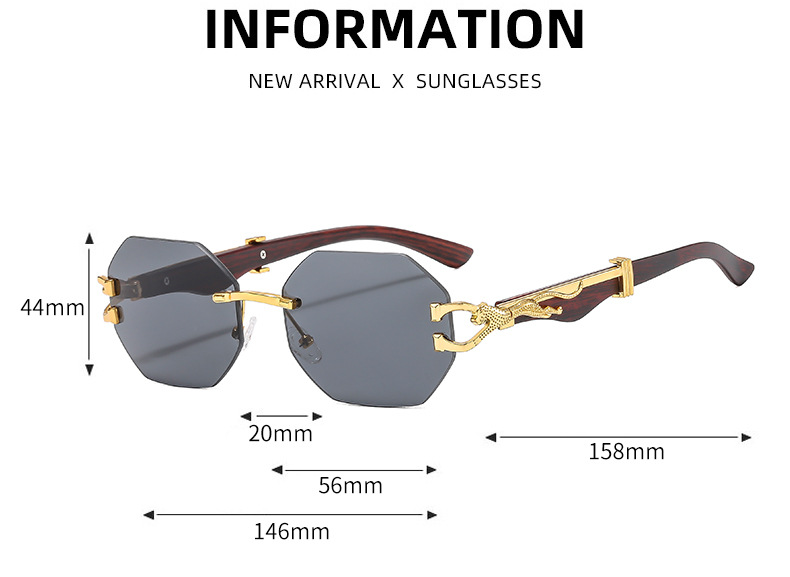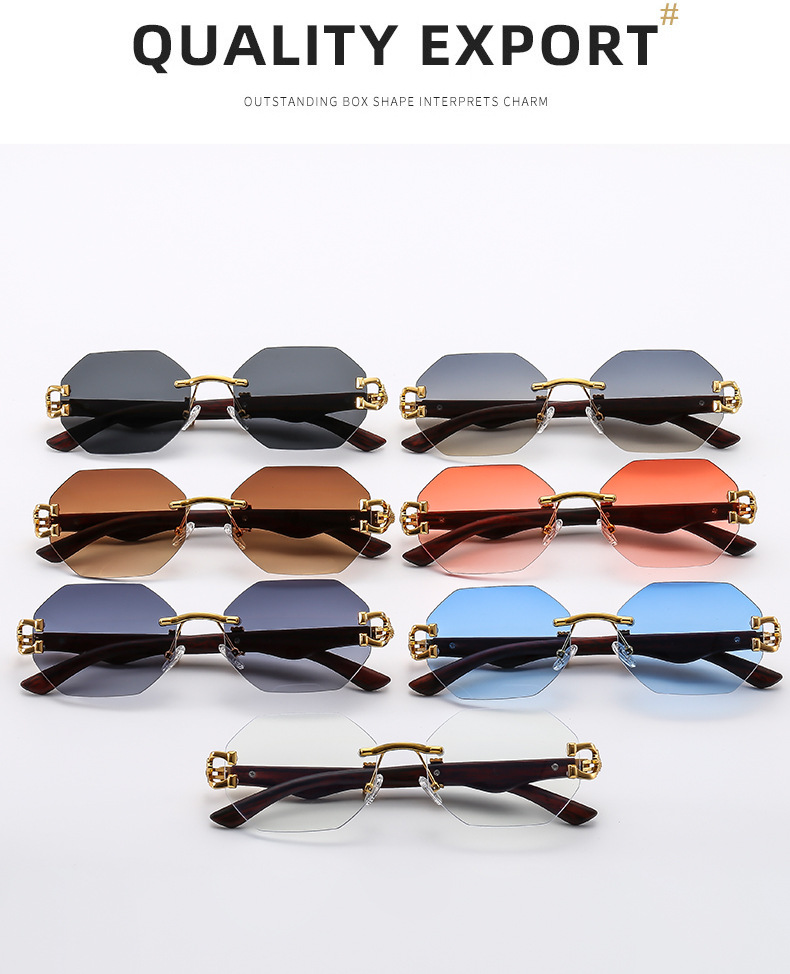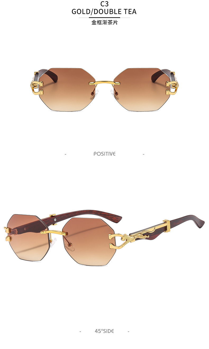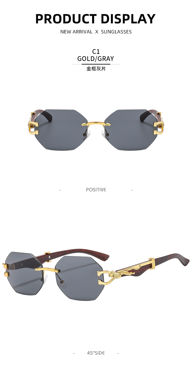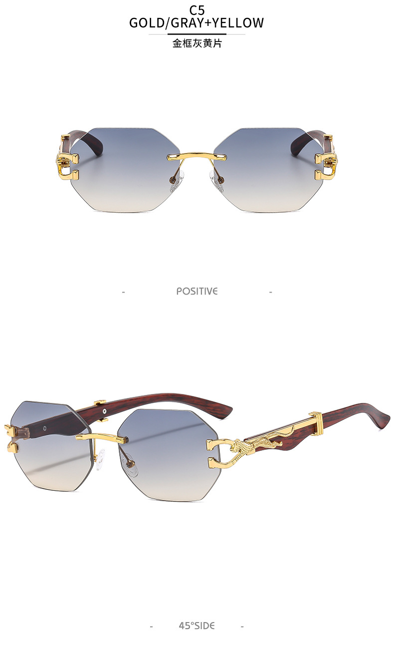 2023 유럽 및 미국 프레임리스 트림 선글라스 패션 박스 비치 선글라스 트렌디 한 표범 장식 프레임 안경스토어 가기