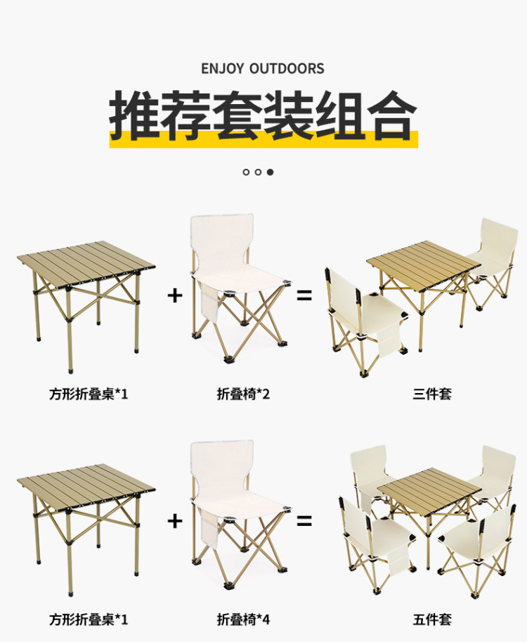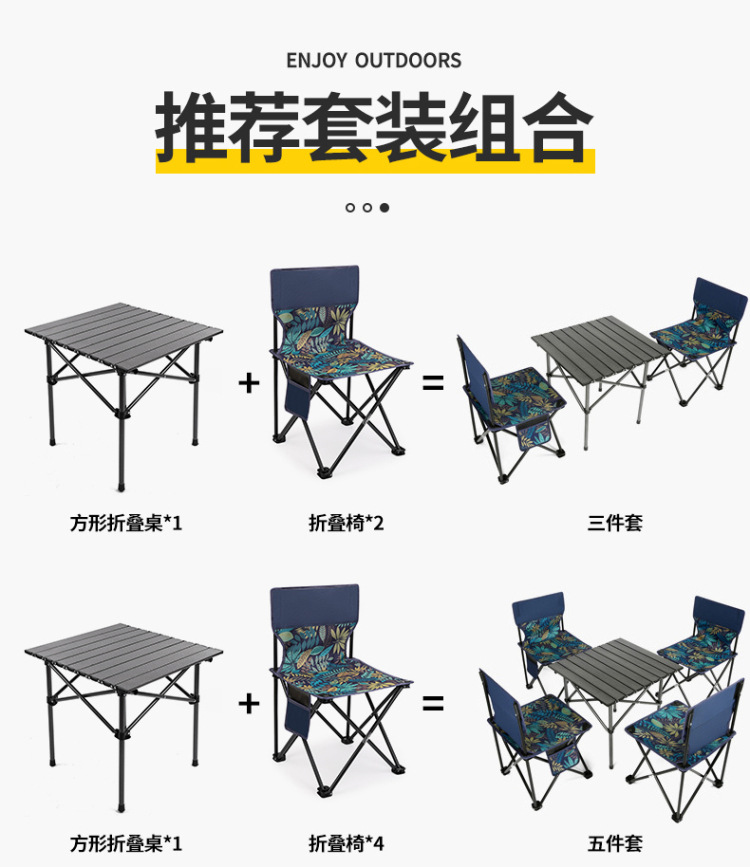 야외 접이식 의자 휴대용 접이식 테이블 및 의자 세트 울트라 라이트 계란 롤 테이블 캠핑 야외 레저 조합 테이블 및 의자