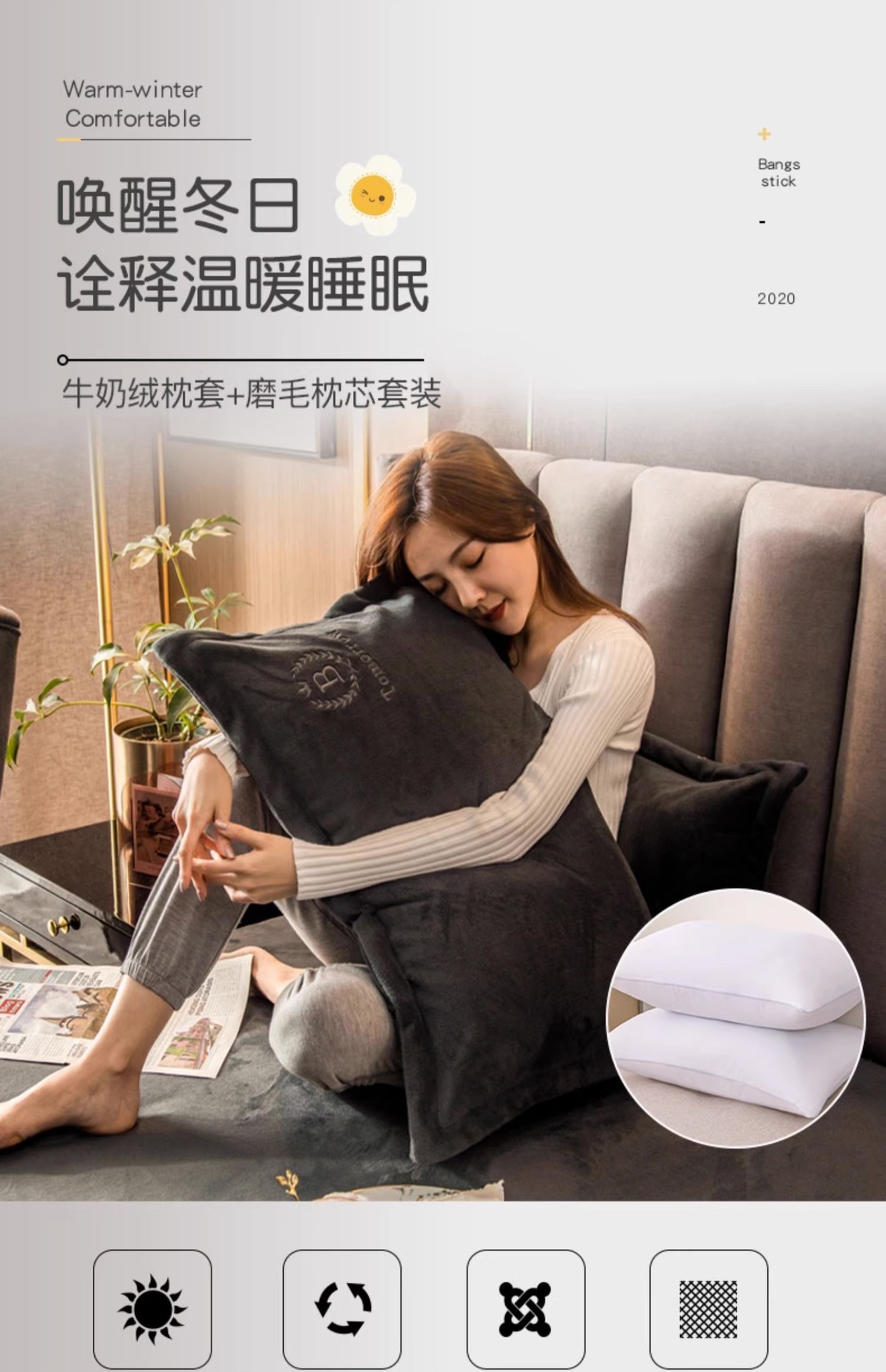 우유 벨벳 베개 홈 세트 기모 두꺼운 베갯잇 기숙사 학생 싱글 더블 베개 코어 도매