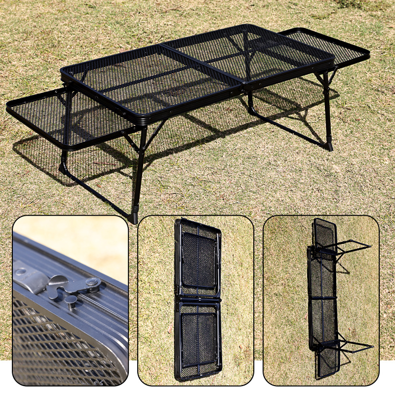 철 그물 접이식 테이블 야외 자율 주행 휴대용 캠핑 테이블 리프팅 확장 된 알루미늄 합금 메쉬 식탁 도매