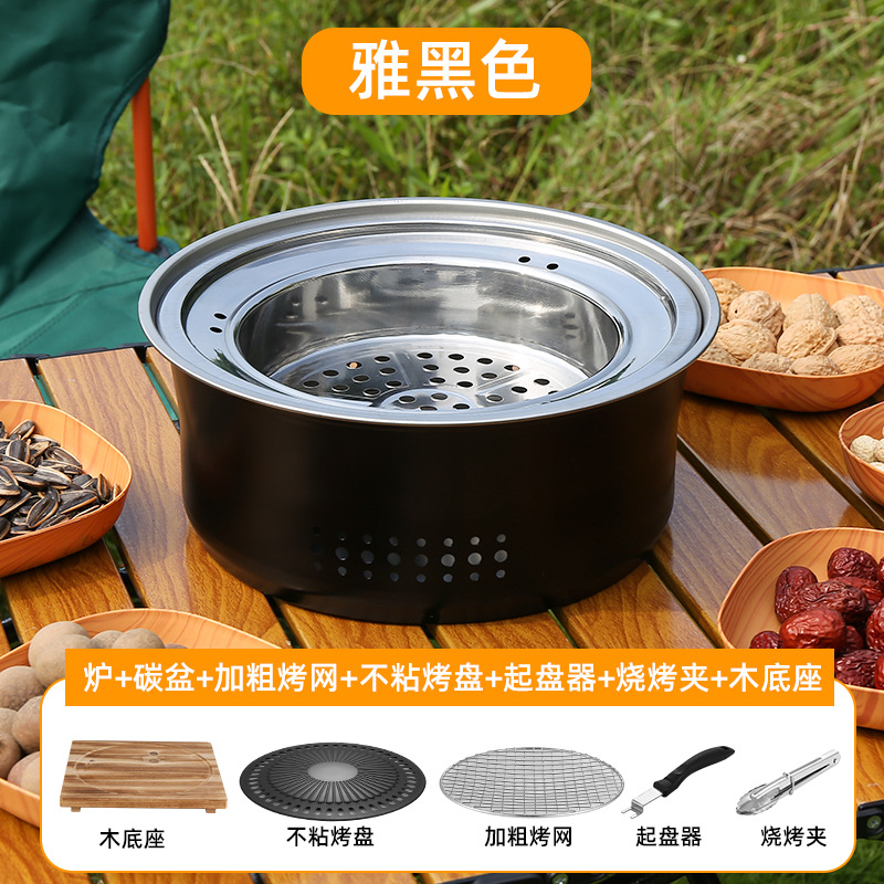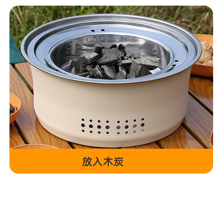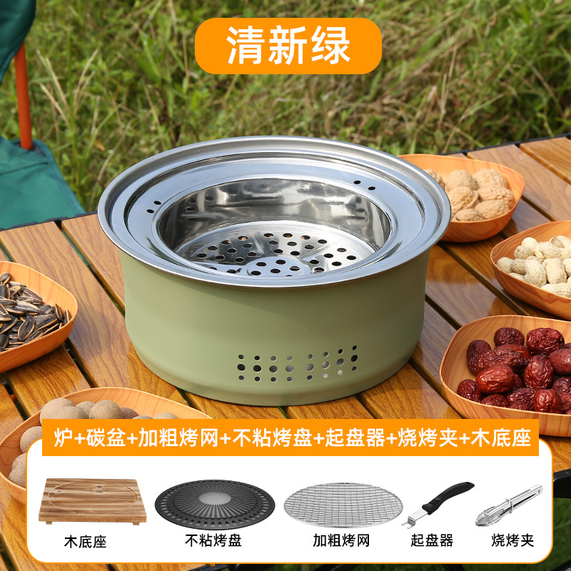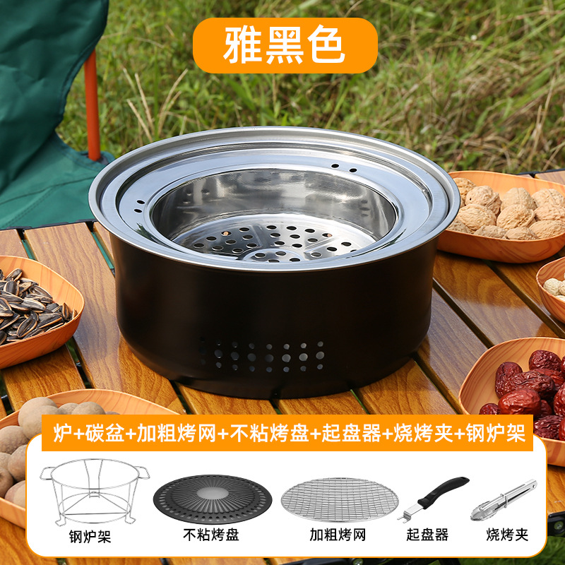 스테인레스 스틸 둘러싸인 스토브 요리 차 스토브 숯 바베큐 스토브 랙 상업용 가정용 무연 바베큐 팬 야외 캠핑 피크닉스토어 가기