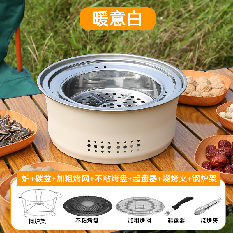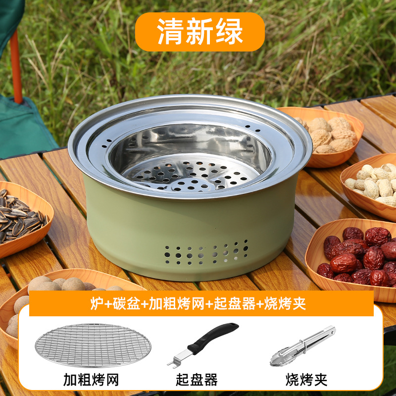 스테인레스 스틸 둘러싸인 스토브 요리 차 스토브 숯 바베큐 스토브 랙 상업용 가정용 무연 바베큐 팬 야외 캠핑 피크닉