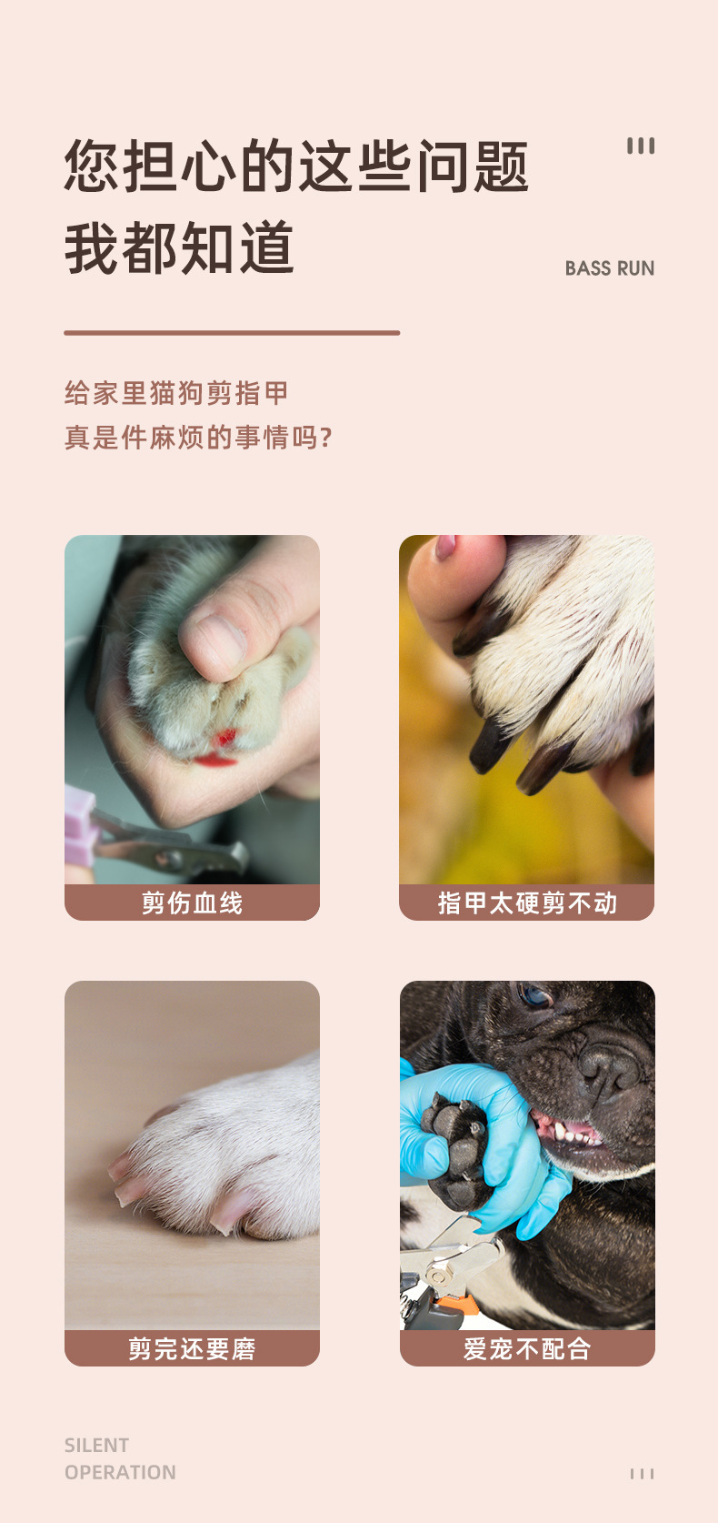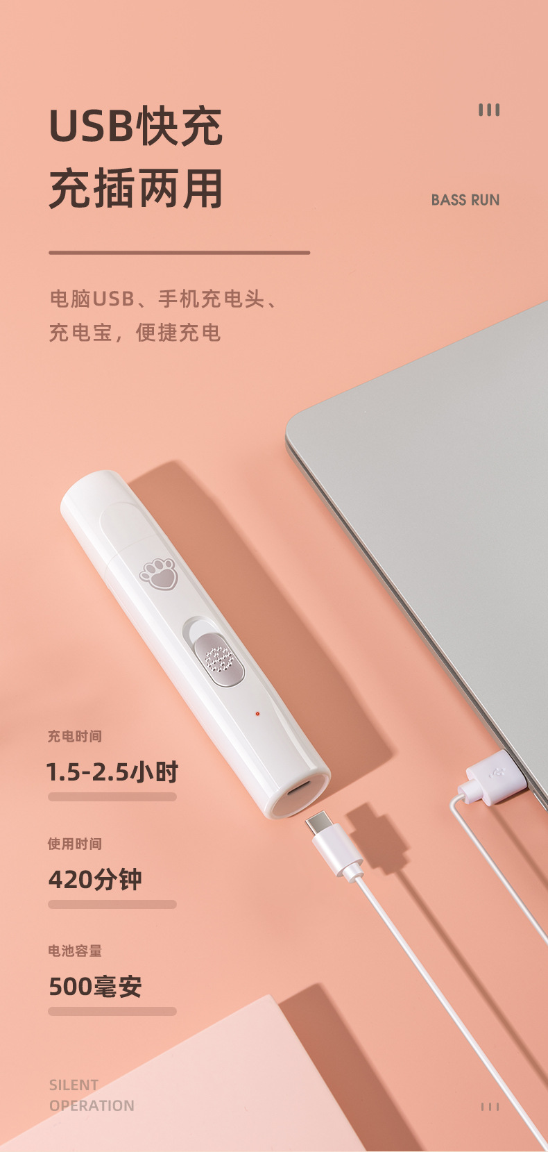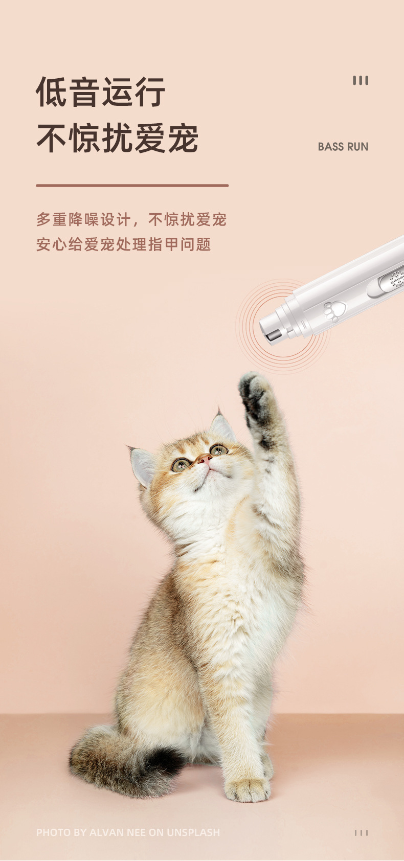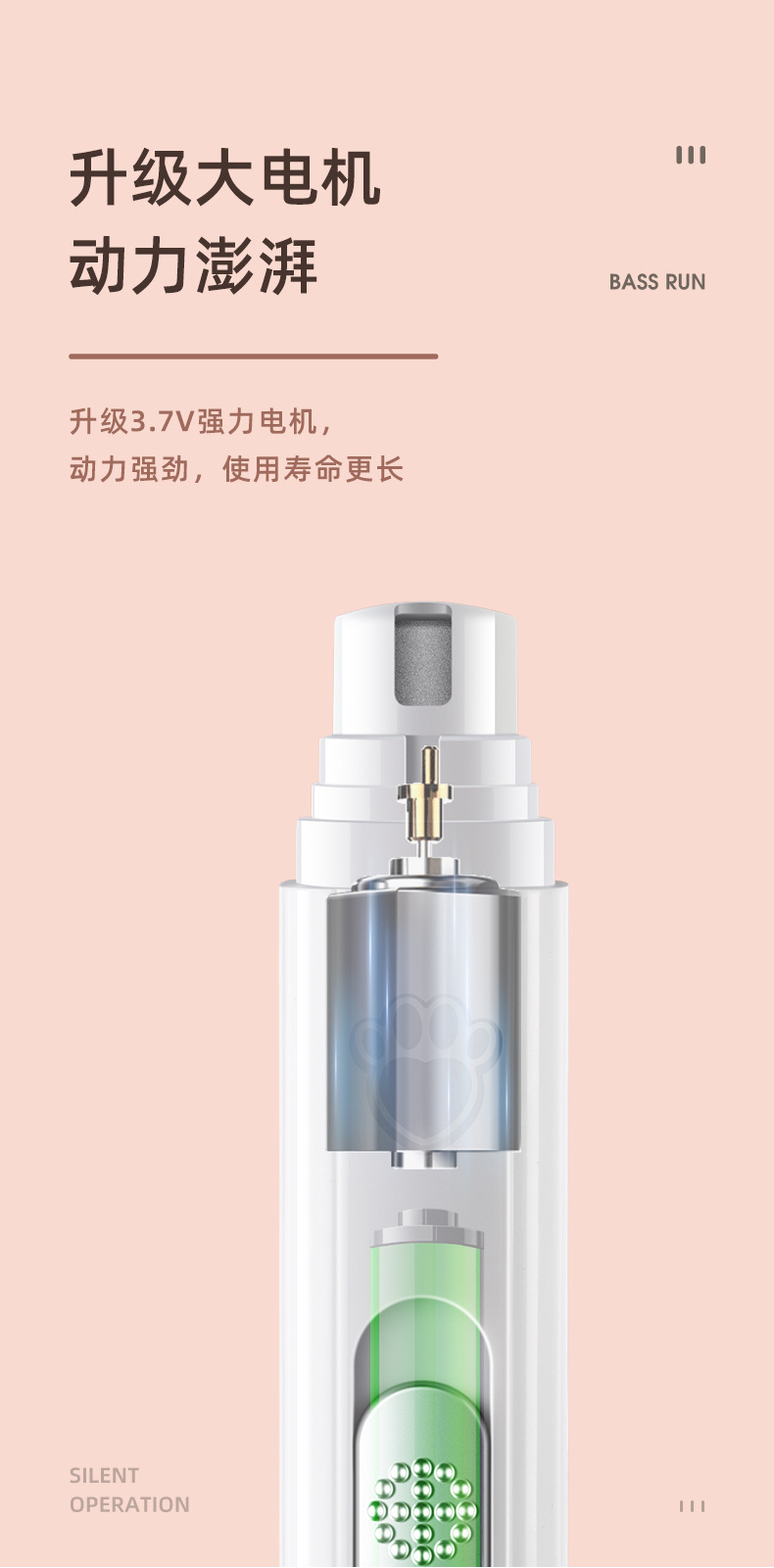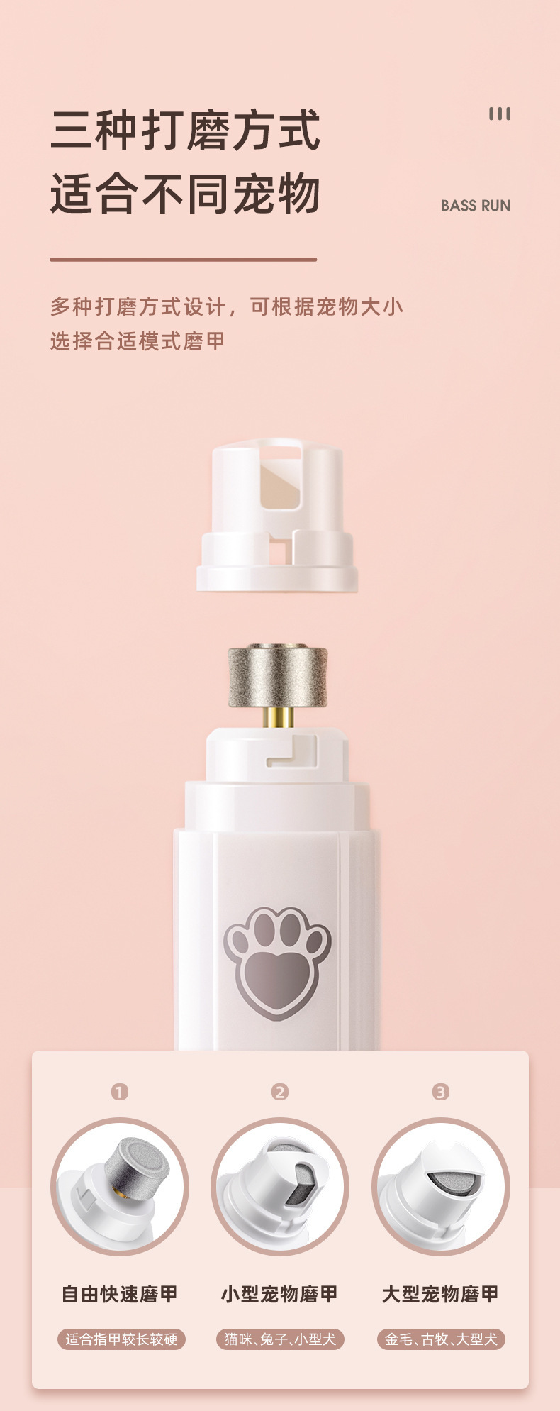 二档调速(5000转,7000转)可快速磨去多余指甲,不会伤害磨到血线而伤害宠物。