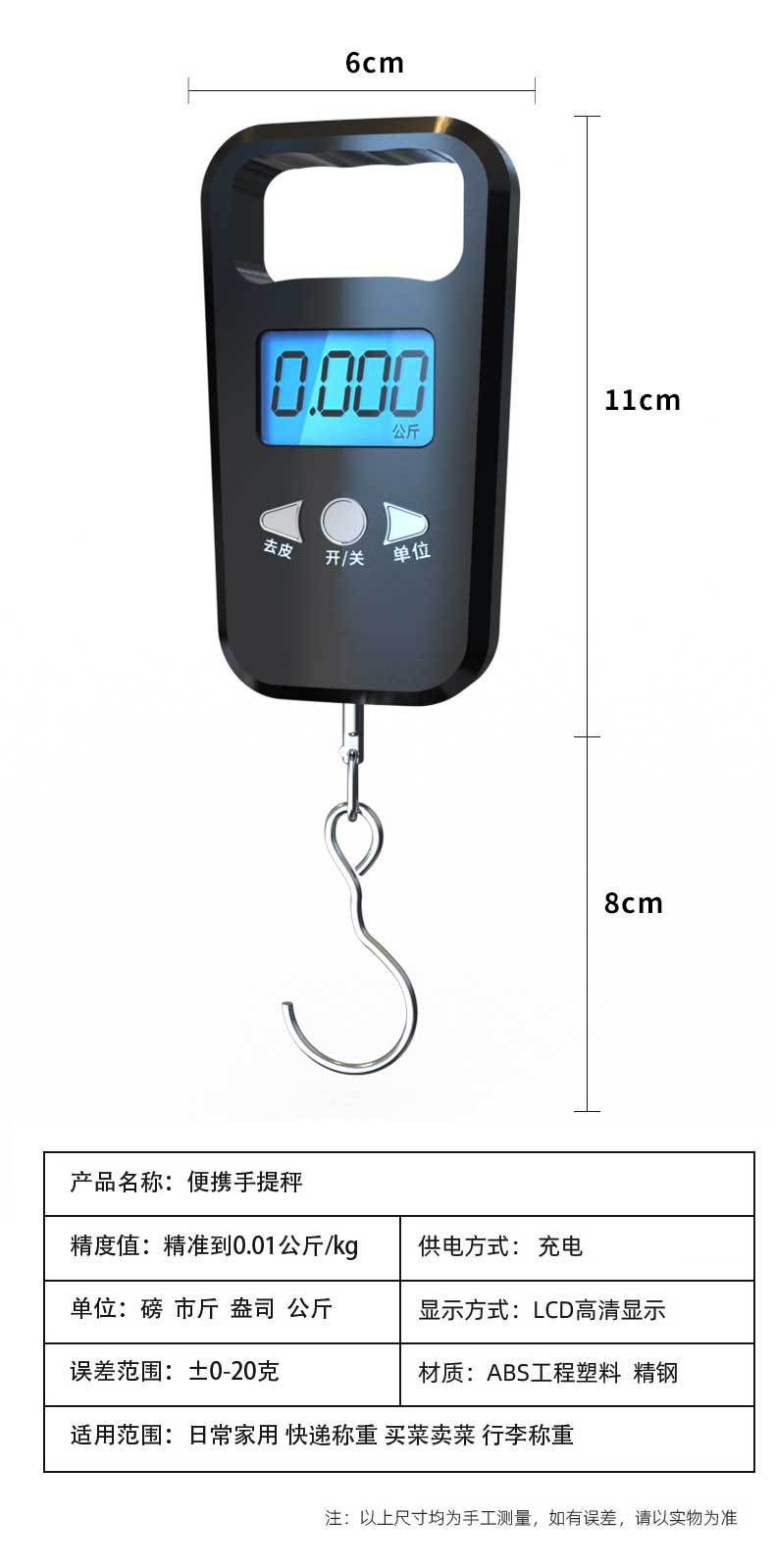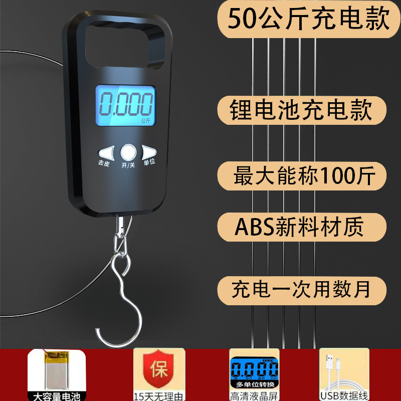 충전식 미니 휴대용 스케일 전자 스케일 50kg 휴대용 고정밀 가정용 익스프레스 스케일 스프링 스케일 작은 상업