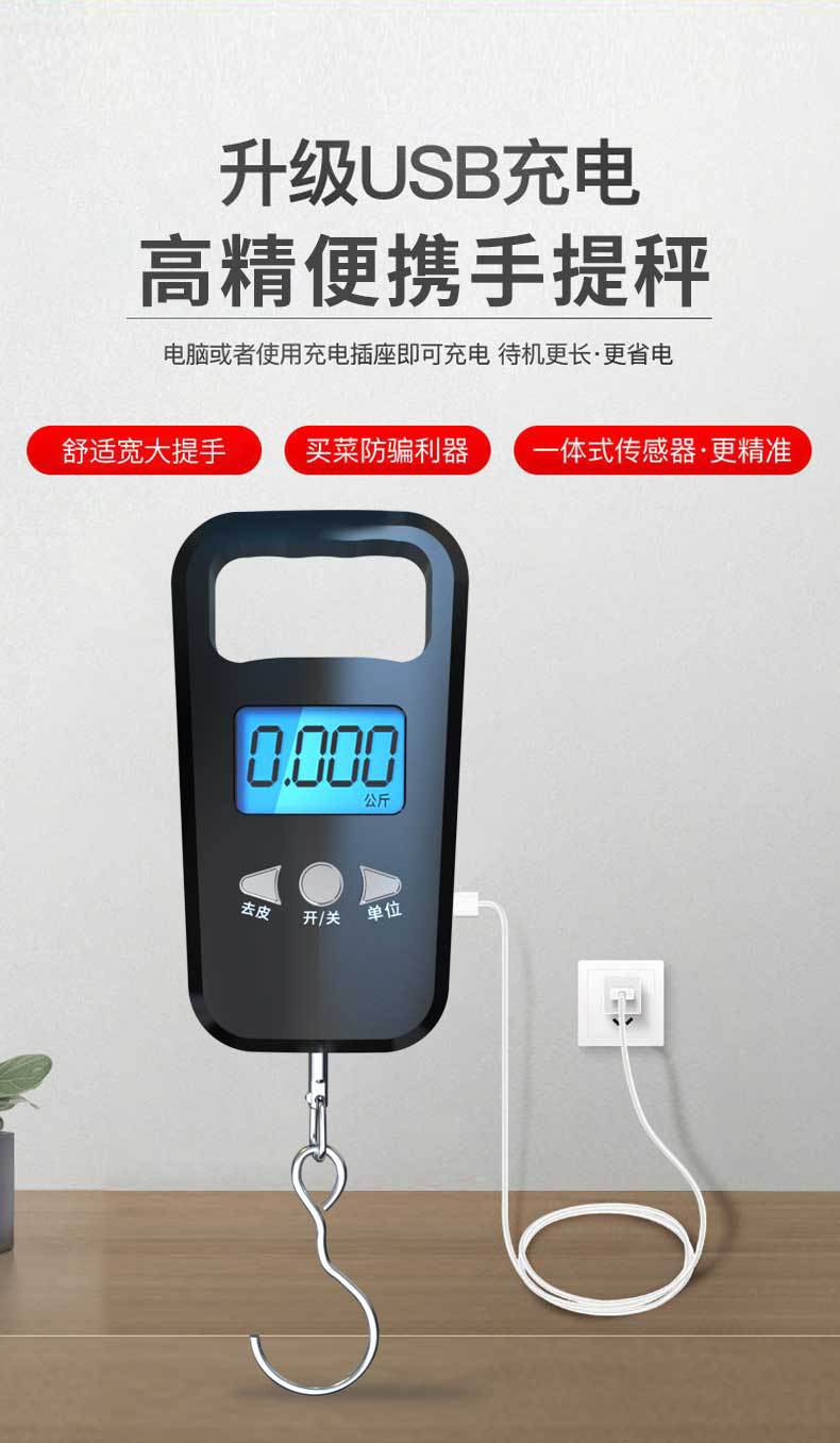 충전식 미니 휴대용 스케일 전자 스케일 50kg 휴대용 고정밀 가정용 익스프레스 스케일 스프링 스케일 작은 상업스토어 가기