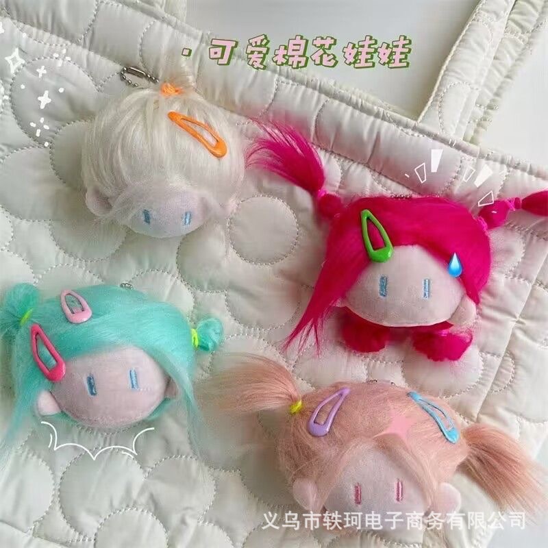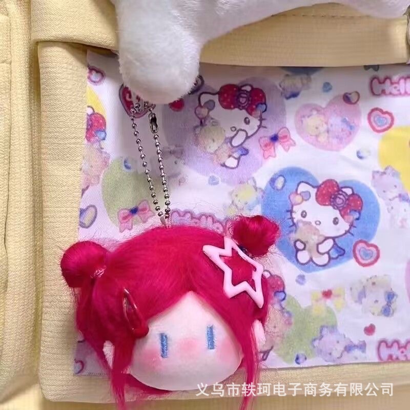 작은 빨간 책 폭발 귀여운 공 머리 튀긴 면 인형 펜던트 인형 봉제 열쇠 고리 여성을위한 생일 선물