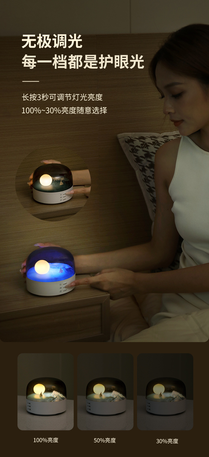 2.有无极调光模式,可根据个人喜好调节灯光的亮度