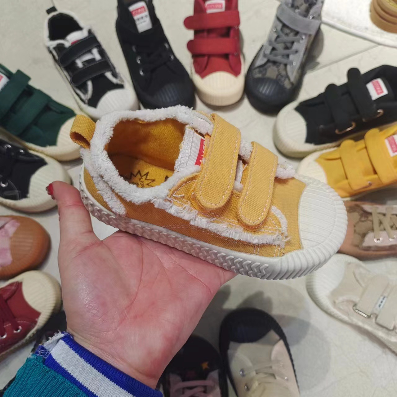 새로운 캔버스 어린이 실내 신발 사계절 어린이 소프트 솔 보드 신발 소년 소녀 미끄럼 방지 캔버스 신발 실내스토어 가기