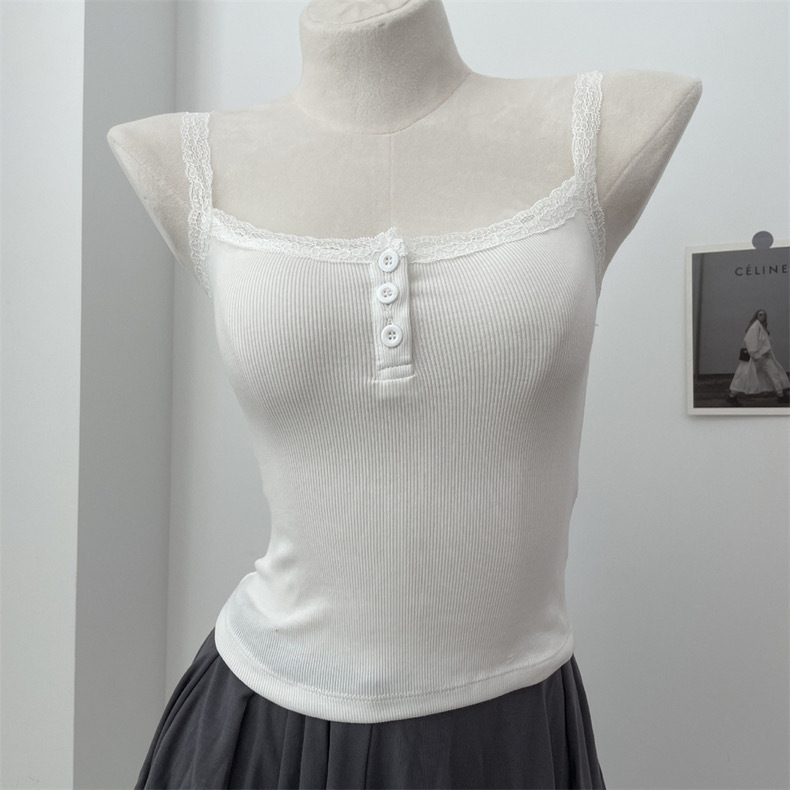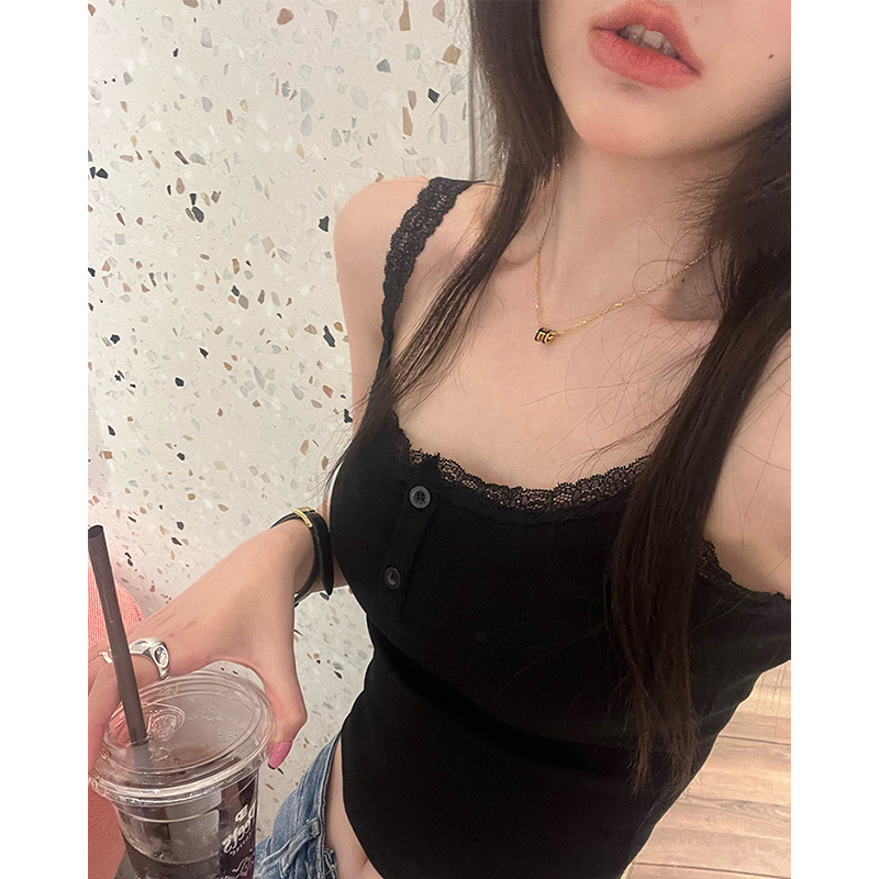 새로운 스타일 레이스 캐미솔 여성의 온라인 인기 슈퍼 파이어 이너베이스 겉옷 순수한 욕망 스타일 여성을위한 달콤한 매운 민소매 탑스토어 가기