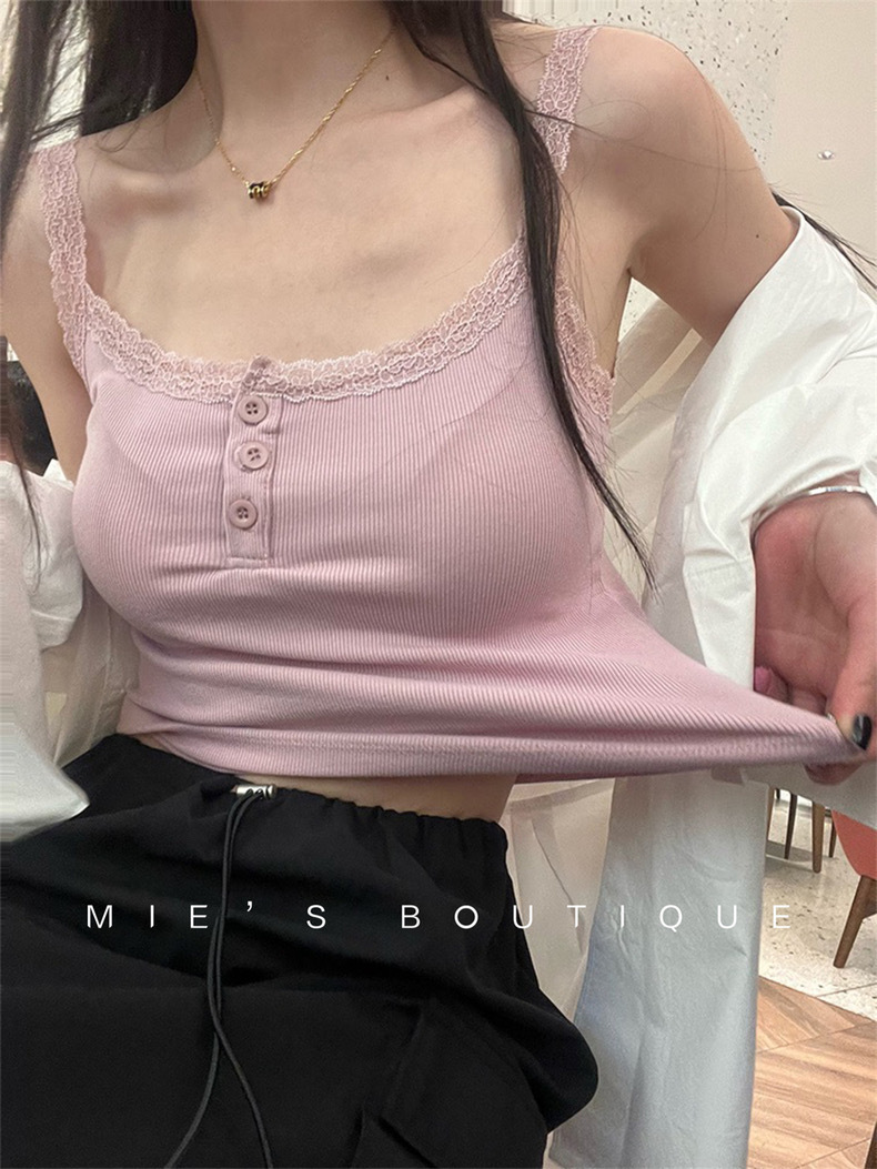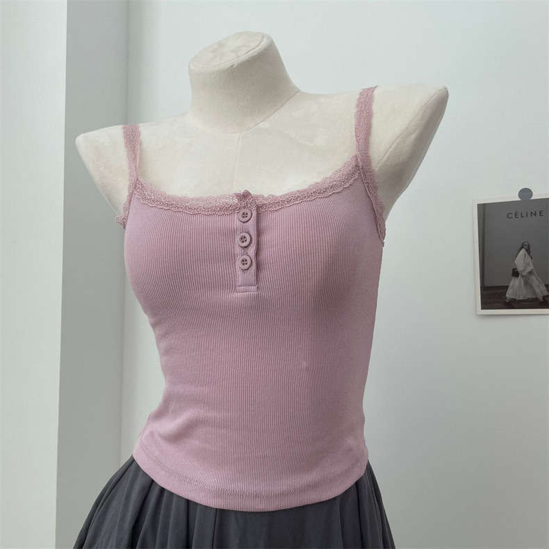 새로운 스타일 레이스 캐미솔 여성의 온라인 인기 슈퍼 파이어 이너베이스 겉옷 순수한 욕망 스타일 여성을위한 달콤한 매운 민소매 탑