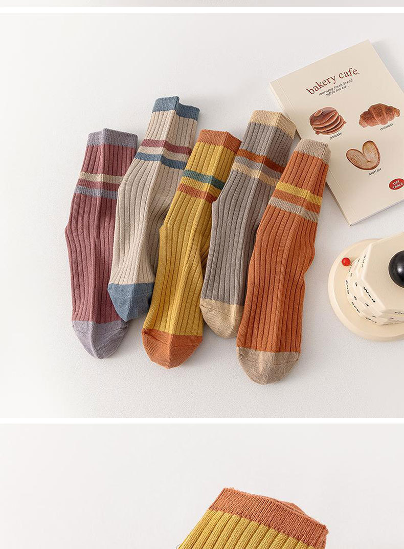 여성용 봄 여름 면 양말, 주지 양말 제조업체 바이네르드 시리즈, 심플한 여성용 면 양말, 배색 스트라이프 중목 양말