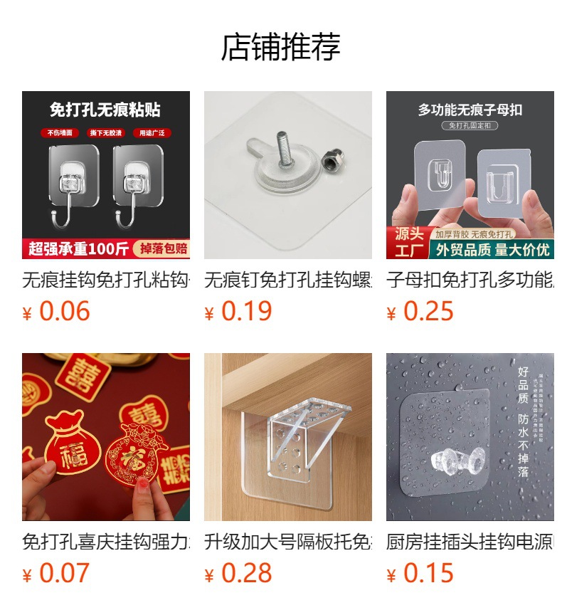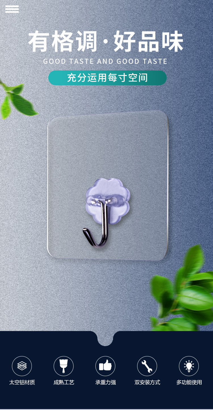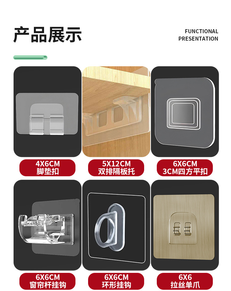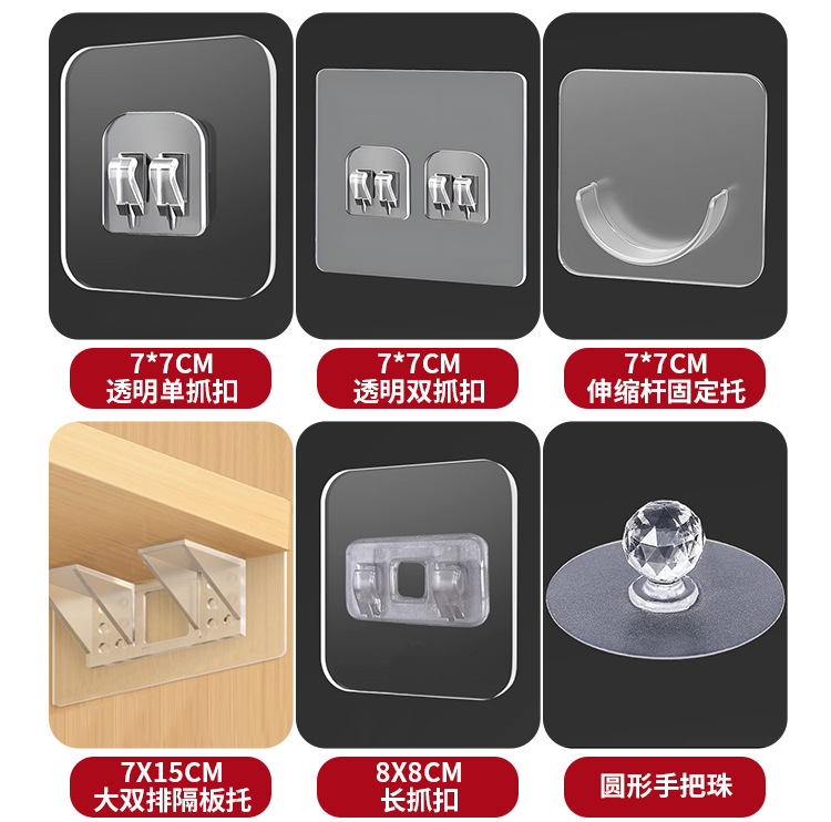원활한 후크, 펀칭 없음, 접착 후크, 욕실 주방 스냅 버클, 강력한 스티커, 다기능 투명 플라스틱 후크 후크스토어 가기