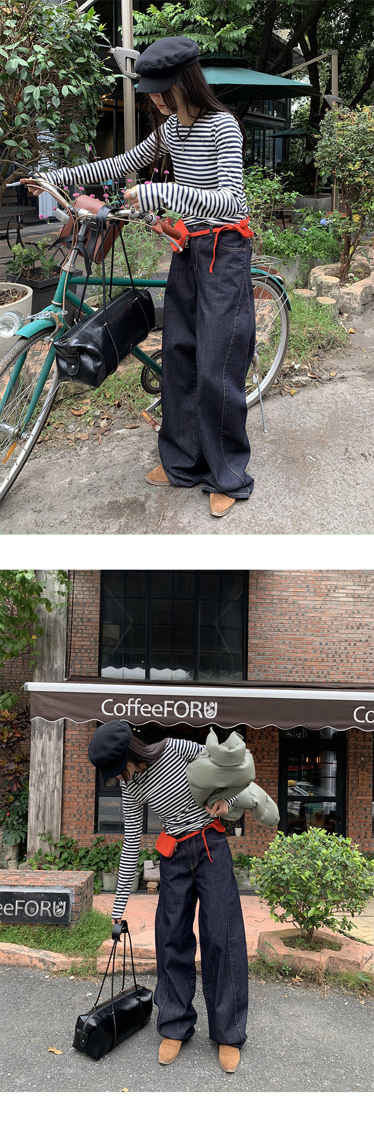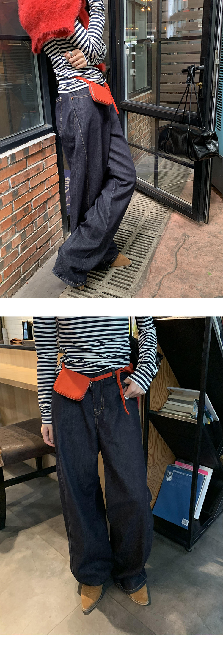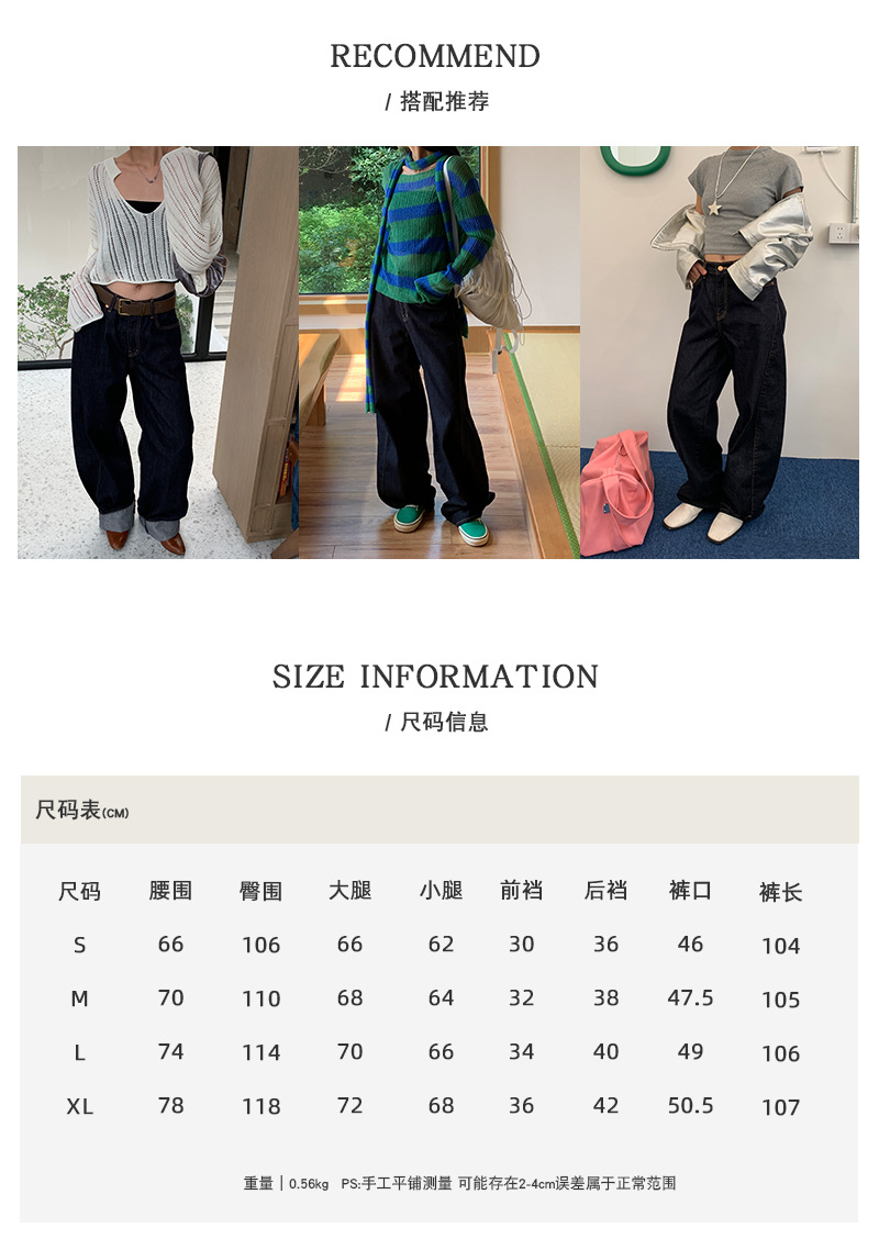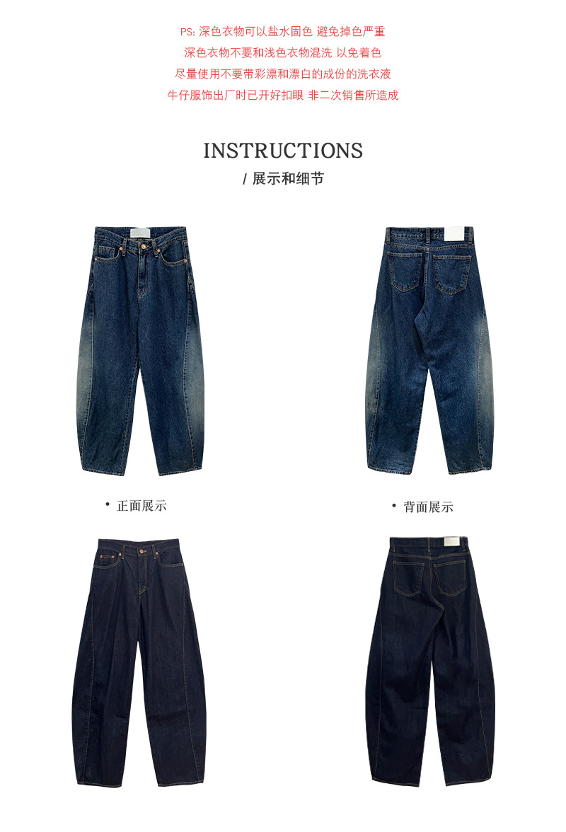 Yu Yi 2024 봄 ins 맞춤형 디자인 드레이프 청바지 여성 하이 웨이스트 루즈 캐주얼 와이드 레그 팬츠 70282스토어 가기