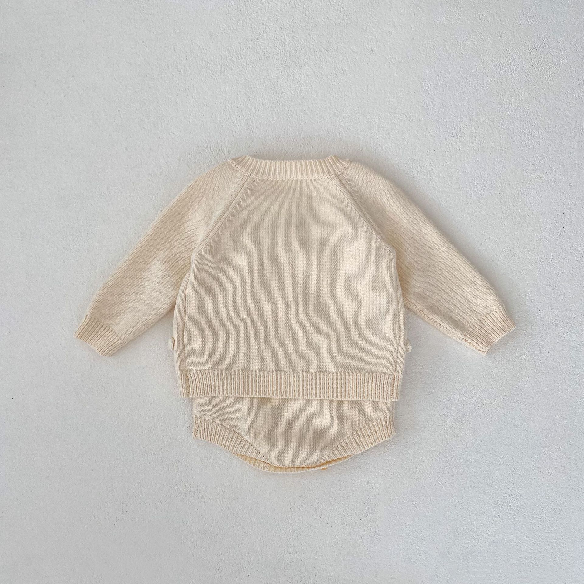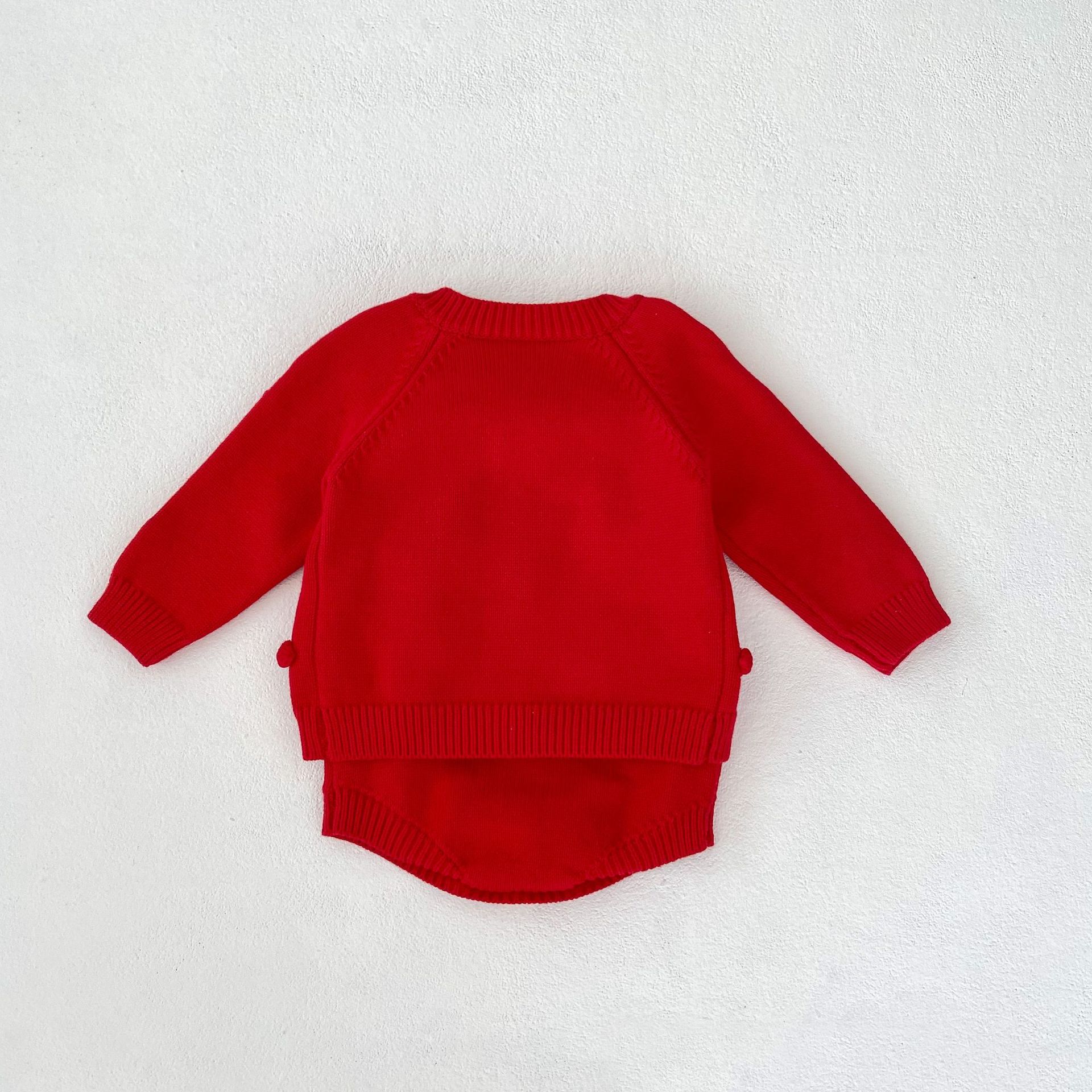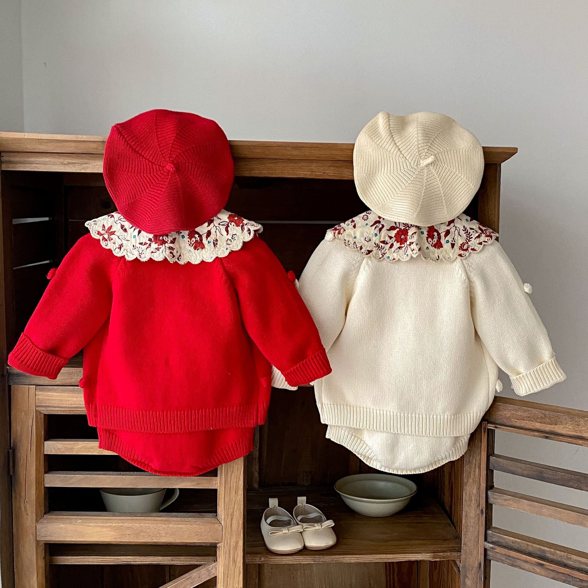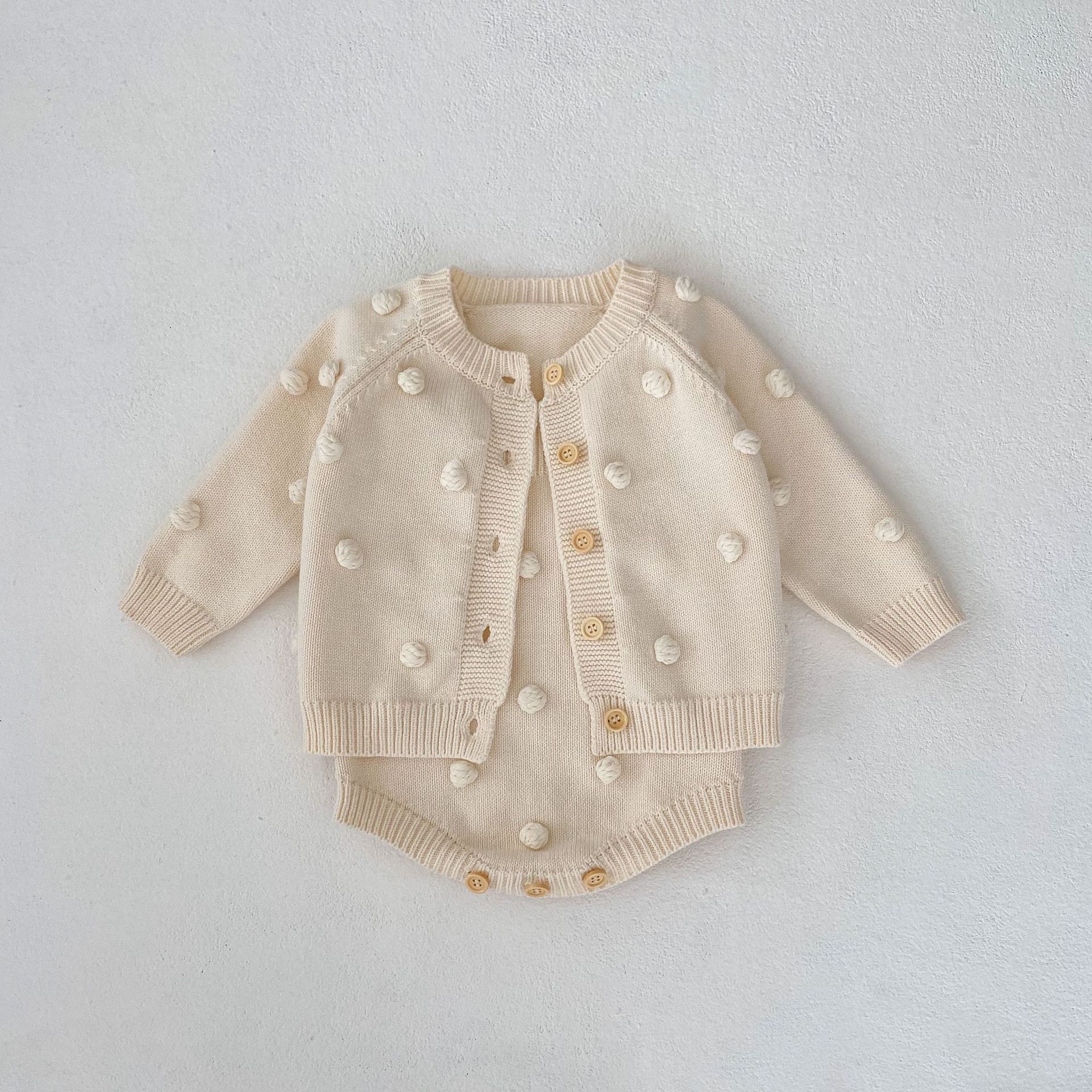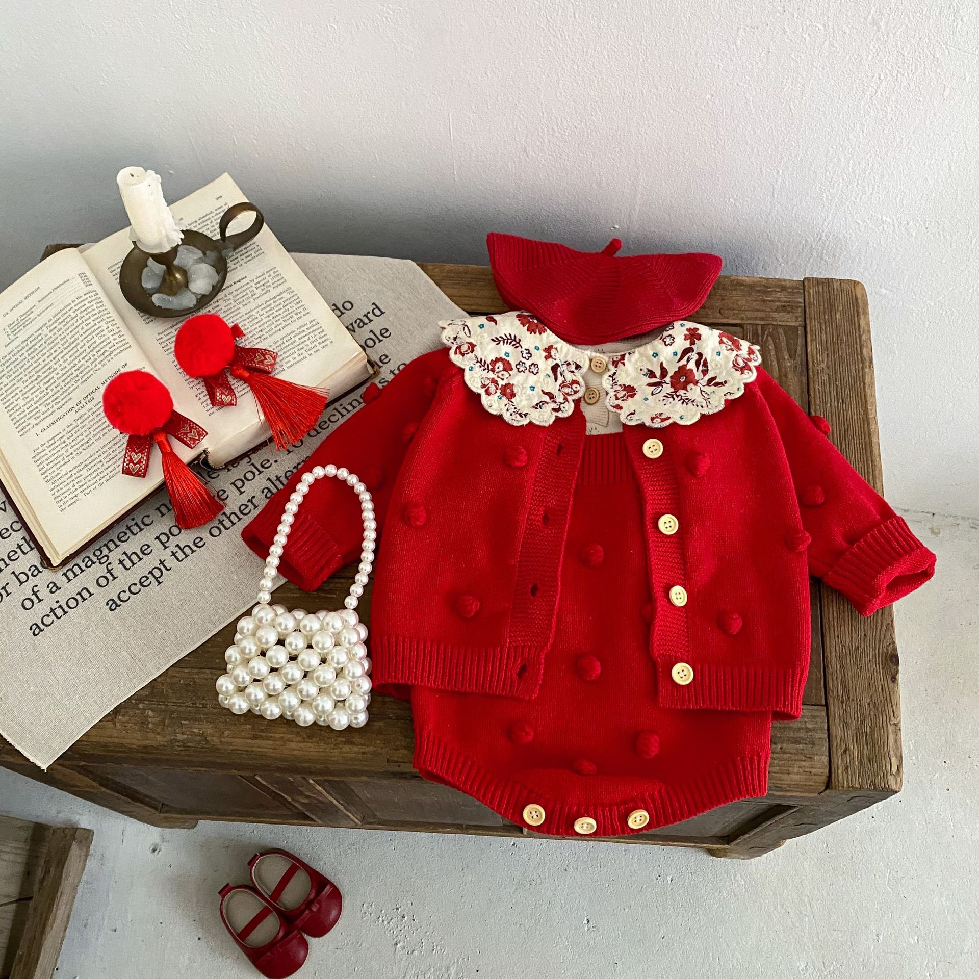 2026년 가을 겨울 신상 유아 여아용 핸드메이드 볼 니트 자켓+니트 멜빵 점프수트