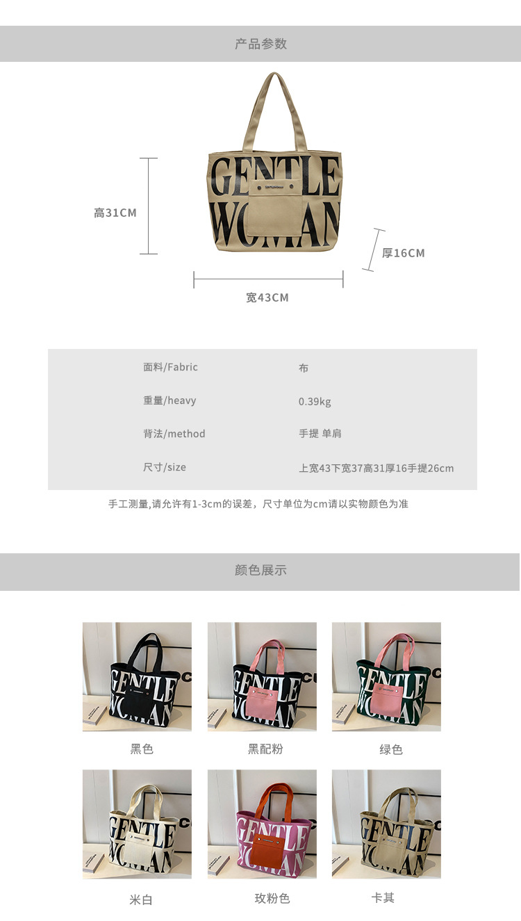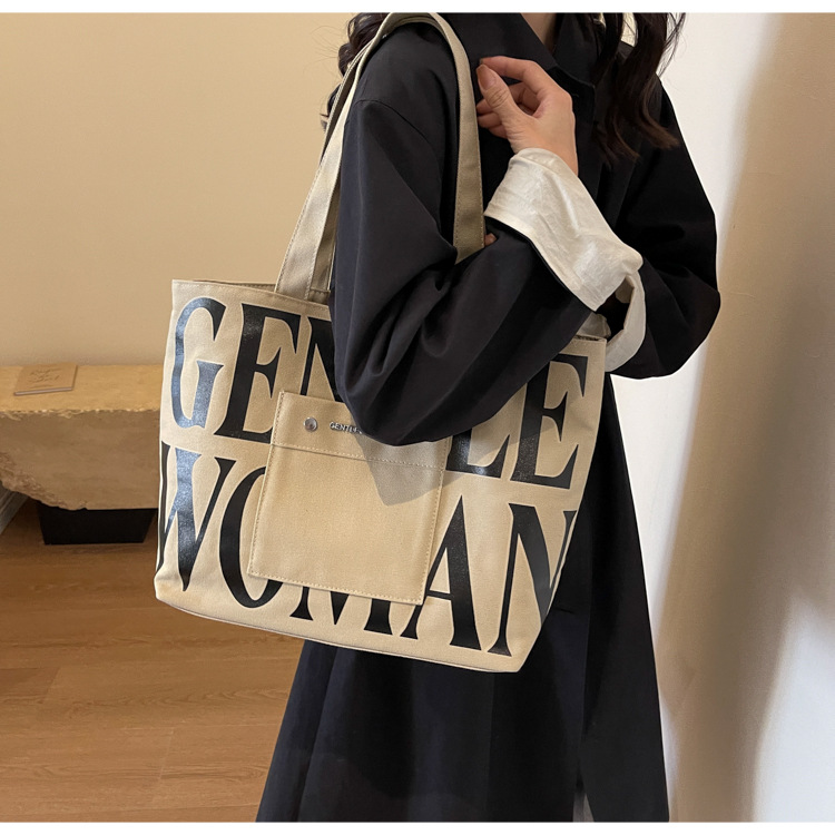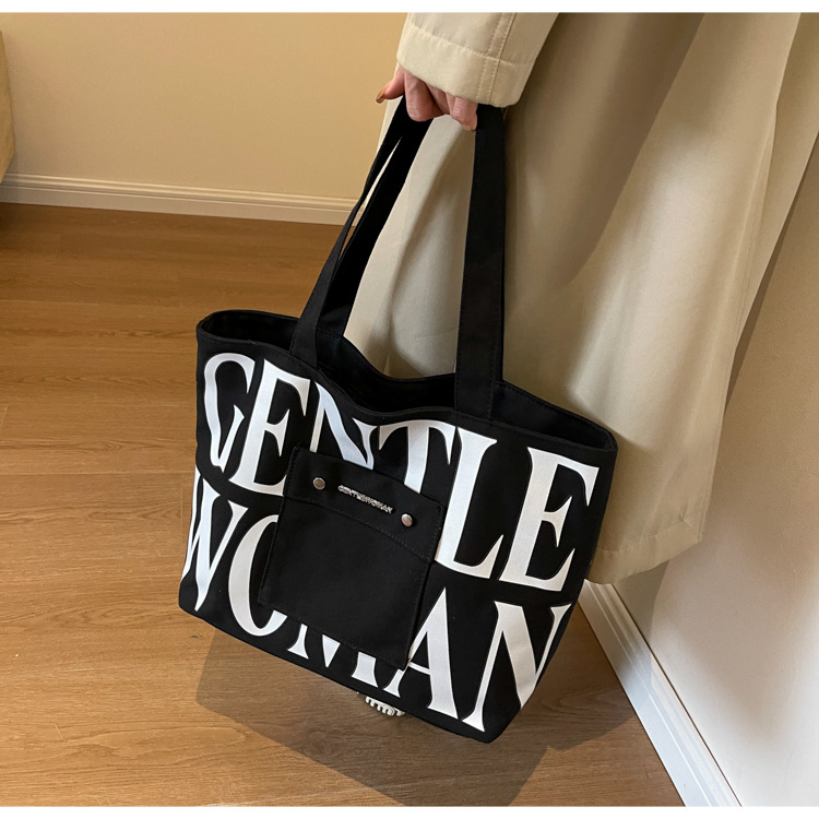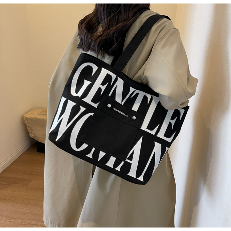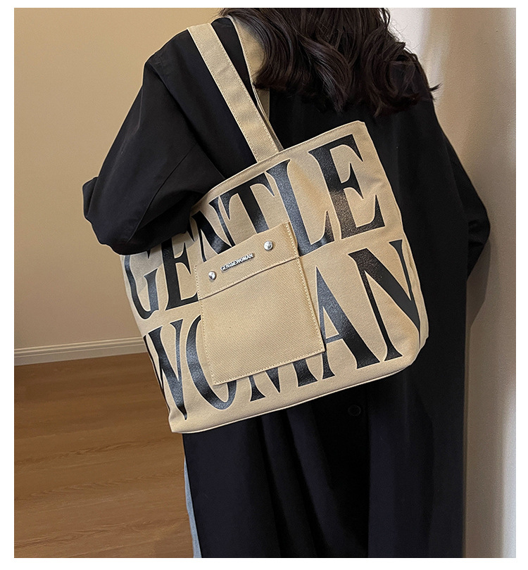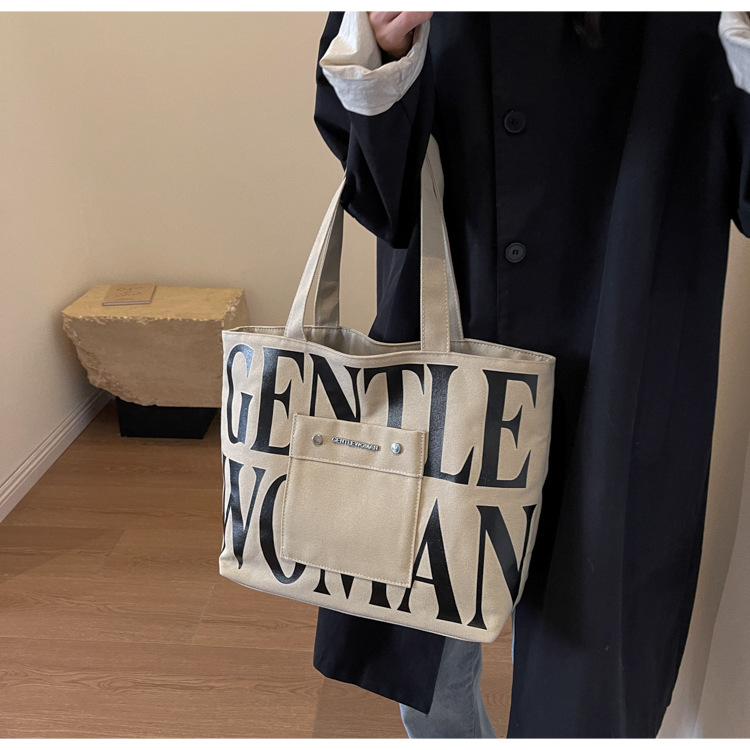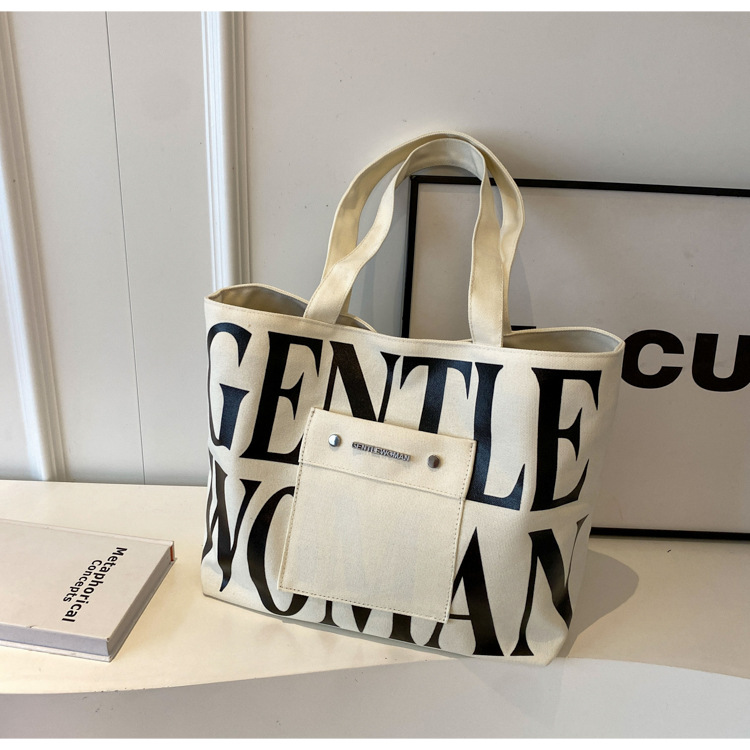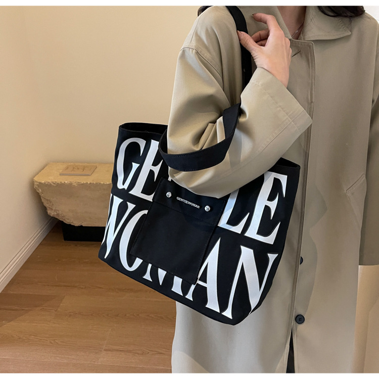 부드러운 여자 대용량 편지 인쇄 손 토트 캔버스 가방 2023 새로운 컬러 블록 어깨 가방스토어 가기